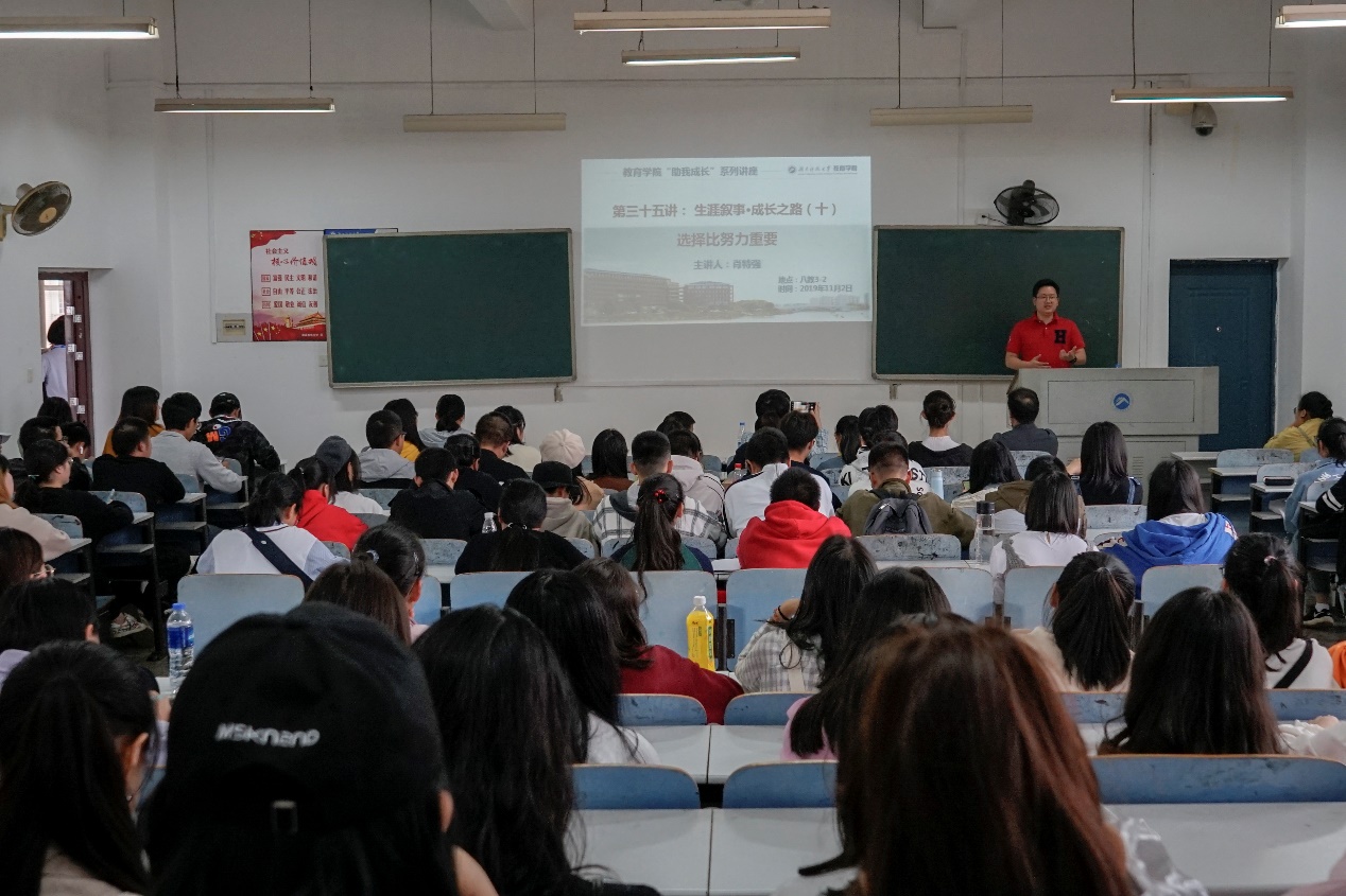 11月2日,由球盟会举办的“生涯叙事·成长之路”(八)-(十) 员工系列讲座在第八教学楼顺利举行。我院2010级应用心理学专业本科毕业生蒋乐玲、2000级教育学专业本科毕业生程燕以及2002级教育技术学专业本科毕业生肖特强三位员工受邀前来分别作专题讲座。球盟会相关负责人及部分学生代表到场聆听。