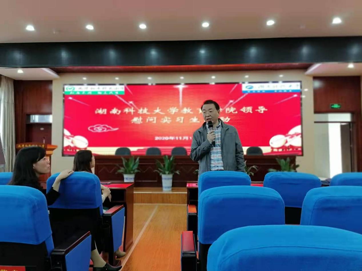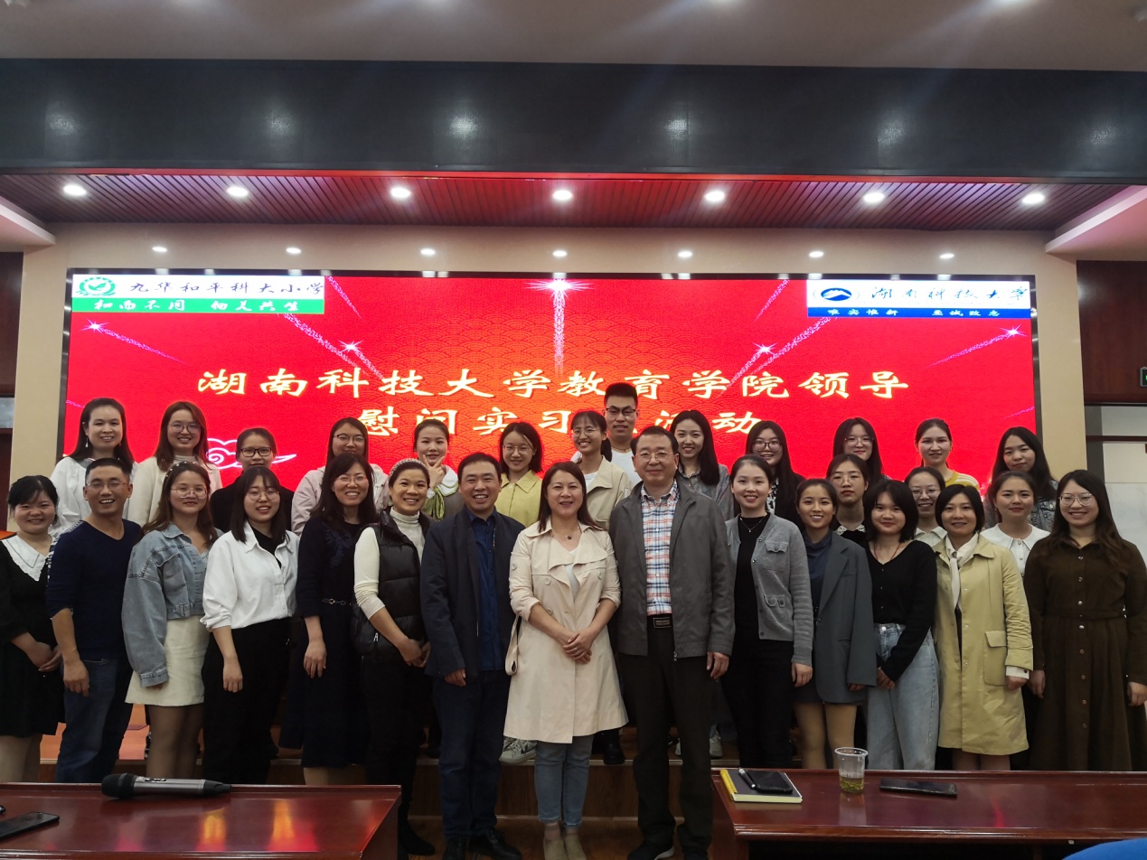 2020年11月18日下午,球盟会经理李海萍、小学教育系系主任夏永庚、教务办主任周文杰来到九华和平科大小学慰问2017级本科实习生,活动在九华和平科大小学综合楼五楼会议室进行。
