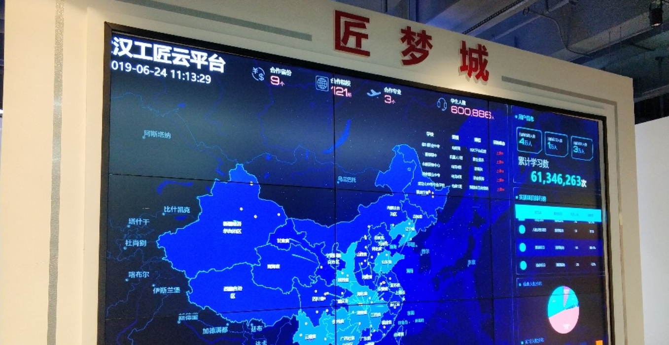 最后,大家观看了大汉集团的金桥数据能控中心,聆听工作人员的解说,领会以智慧课堂为载体,通过校企合作、产教融合、产学研一体及服务外包的形式在培养高技能、高素质的专业技能人才方面所形成的大汉师创教育模式的独到之处。
