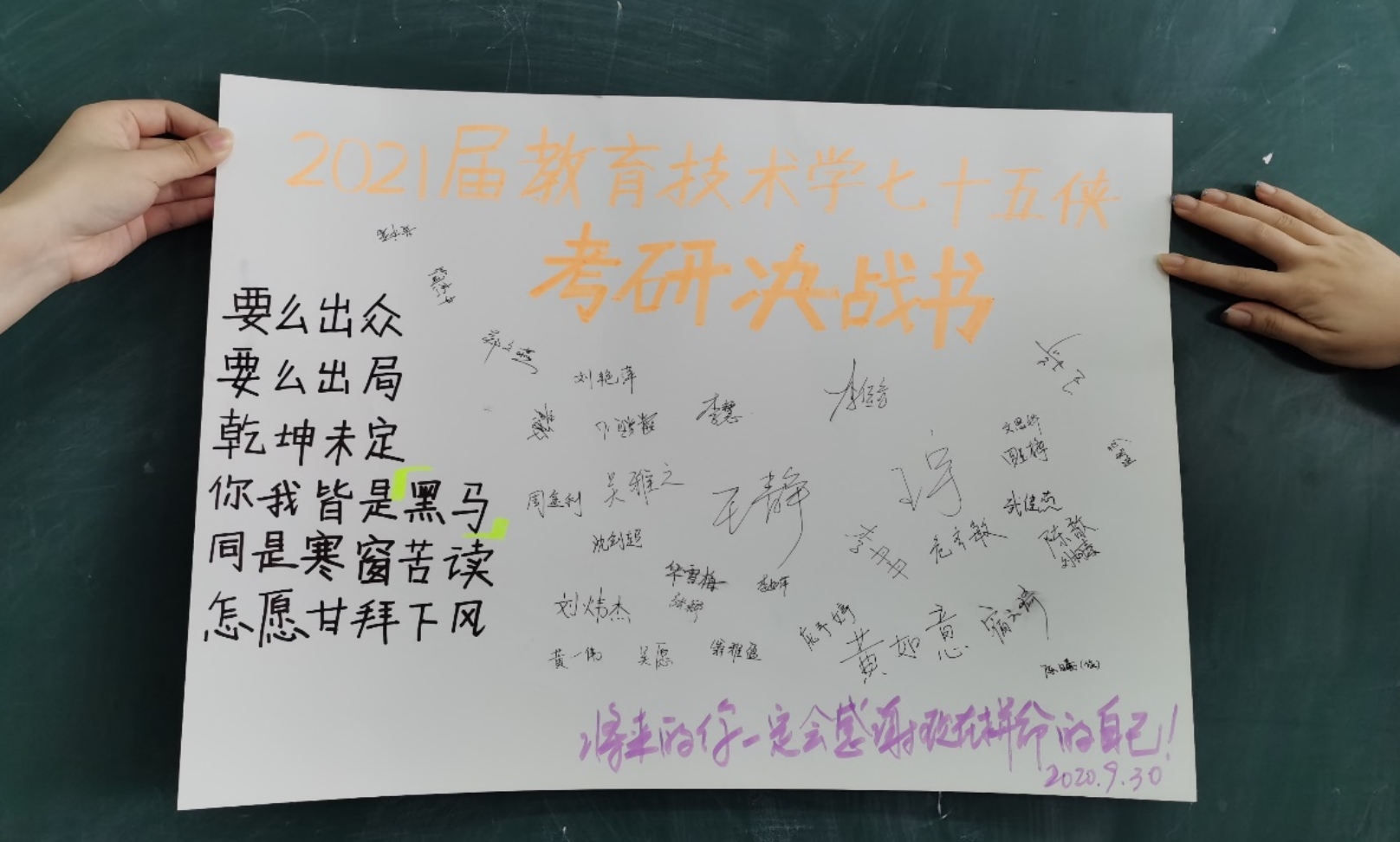 最后,2017级考研同学自发地写下了考研“决战书”,并在决战书上亲笔签名,再此坚定了砥砺前行、考研必胜的信念。