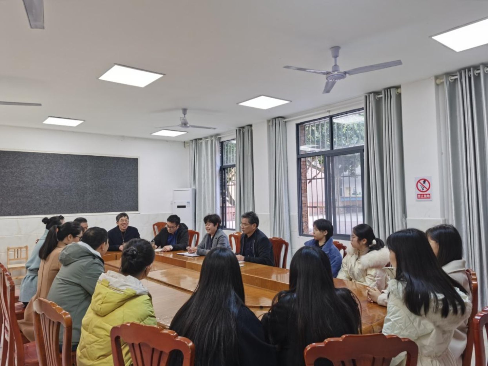 12月9日下午,球盟会李炳煌书记、陈京军副经理、夏永庚主任、周文杰主任到株洲601中英文小学看望实习生,了解实习生的实习情况。董事长易文胜、副董事长朱拥军,教务办刘水清和李晓华主任,实习带队老师彭拥军及全体实习生参加了座谈会。