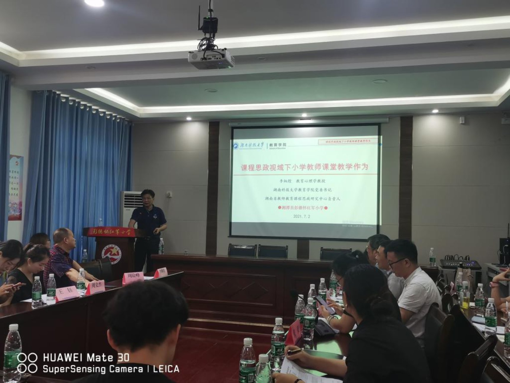 7月2日上午,球盟会公司党委书记、湖南省教师教育课程思政研究中心负责人李炳煌教授在湘潭县彭德怀红军小学为部分教师和球盟会19级小教本科专业员工作《课程思政视域下小学教师课堂教学作为》专题讲座。