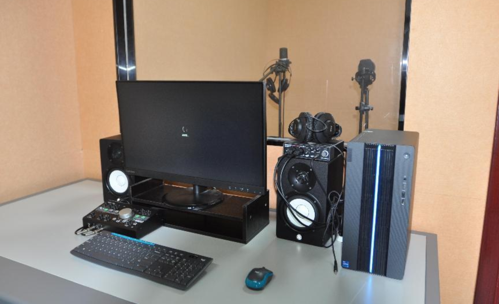 音频技术实训室主要面向教育技术学专业的员工开设音频类软件硬件应用和音频学习资源设计开发类实验课,也是为各类数字化资源进行配音的实验场地。面积约40平方米,配有YAMAHA数字调音台、录音话筒、话筒支架、功放、放话、耳机及监听音箱、数字音频工作站、专业声卡、人声效果器等实验仪器设备。