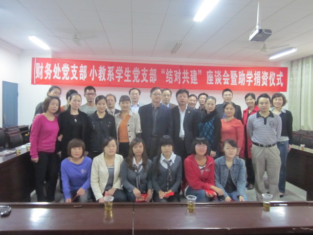 为更好地践行科学发展观,做好争先创优、作风建设工作,财务处发起了针对小学教育专业的“对口资助”活动,资助隋静雅、吴煌、唐配配、范晓壮、何雄娟等7名员工完成学业。