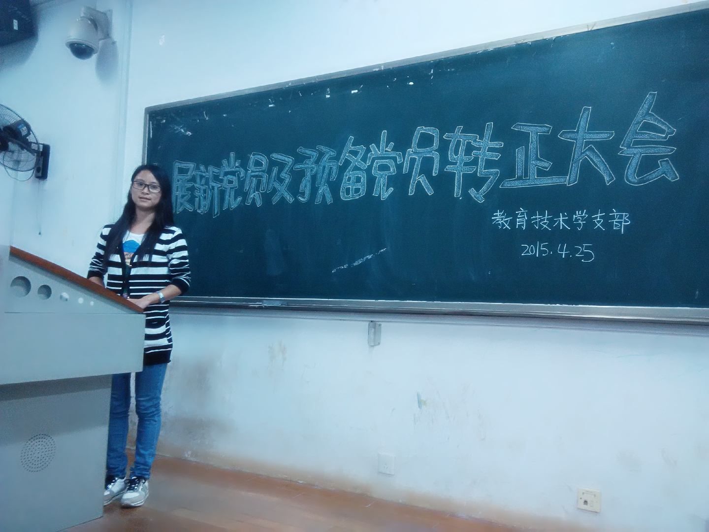 2015年5月10日晚,教育信息技术学系员工党支部全体党员齐聚第八教学楼103教室,召开了本学期的支部大会。会议主要围绕接收新党员以及预备党员转正两大重要议题进行。此次大会由本学系支部书记白力芳同志主持。