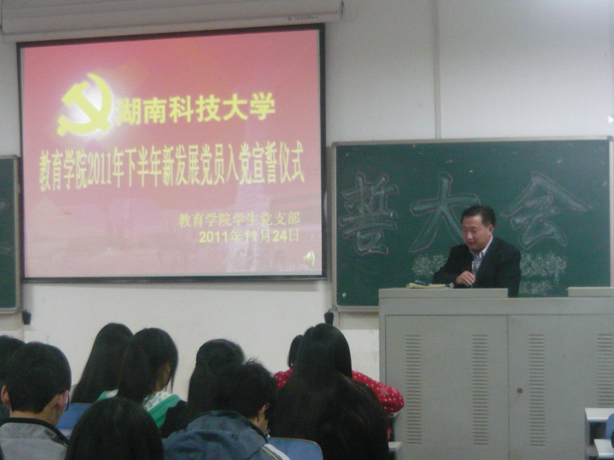 11月24日19时,在国际歌庄严而激昂的旋律和同学们的肃穆眼神中,2011年公司党员宣誓大会正式开始。党委书记谭建平同志,研究生党支部书记练素华同志,本科党支部书记胡银华同志参加了此次会议,大会由公司党委副书记王伟清同志主持。