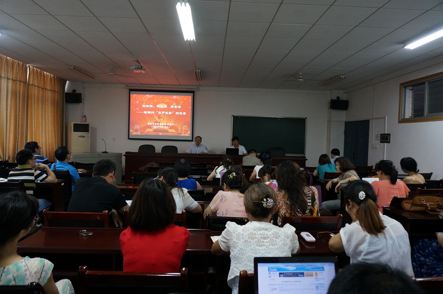 2015年6月16日下午,球盟会 “三严三实”专题党课在第八教学楼408室开讲。全体教职工参加了此次专题党课。