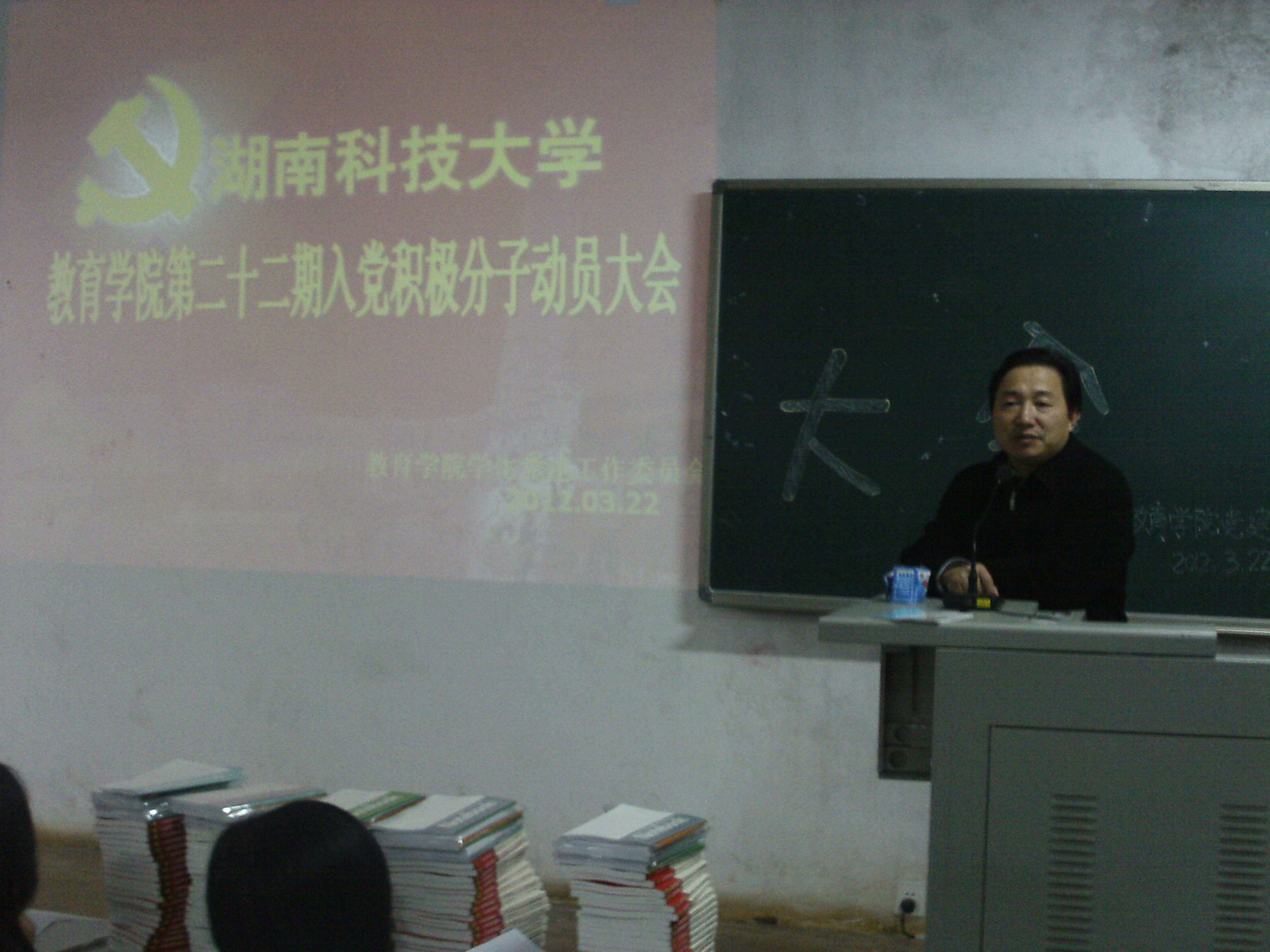 3月22日晚,球盟会员工党支部在第八教学楼1—6教室举行了第二十二期入党积分子动员大会。公司党委副书记、党校球盟会分校董事长王伟清同志、院本科生支部书记胡银华同志、院研究生支部书记练素华同志、员工党建会副书记易溪宇同志出席了本次动员大会。