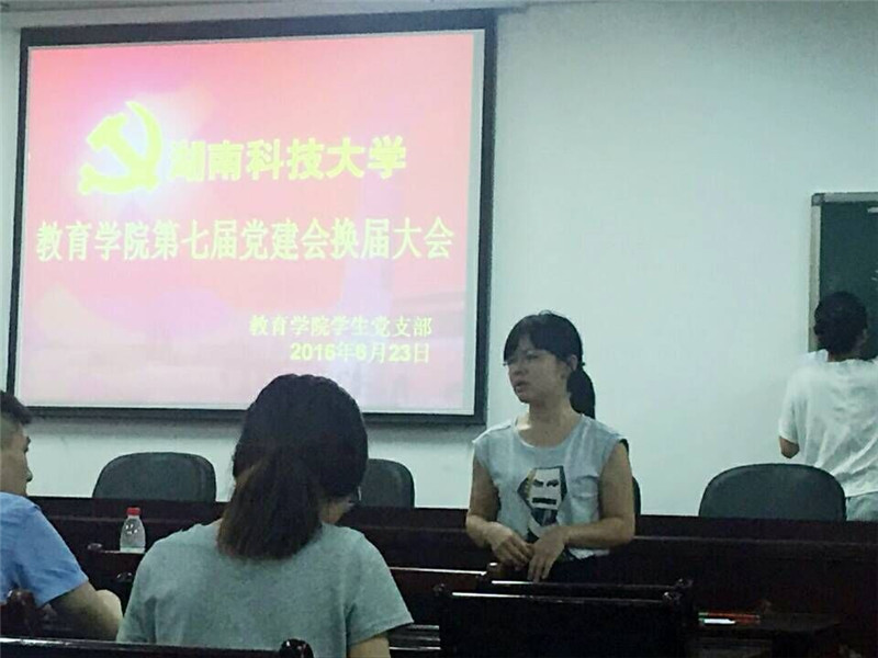 首先吴晨倩同志宣布大会开始,并宣读本次换届的有关规定、竞选的规则以及选票填写的注意事项。会议的第一部分为党建会副书记及部门竞选,首个演讲的是来自14级教育学1班的罗培同志,她要竞选的职位是第七届员工党建会副书记,心有猛虎,细嗅蔷薇的罗培言辞诚恳地表示,她将带着“火车头”的卓越精神不断前进。继而,各部门成员都进行了自己的竞选演讲,展现了各自的决心并展示了今后的工作计划与设想。部门竞选结束后现场唱票,宣布了以党建会副书记罗培为中心的第七届党建会新成员。会议的第二部分为支部竞选,各位同志满腔热情的演讲都传递出他们对未来工作的自信与希望。