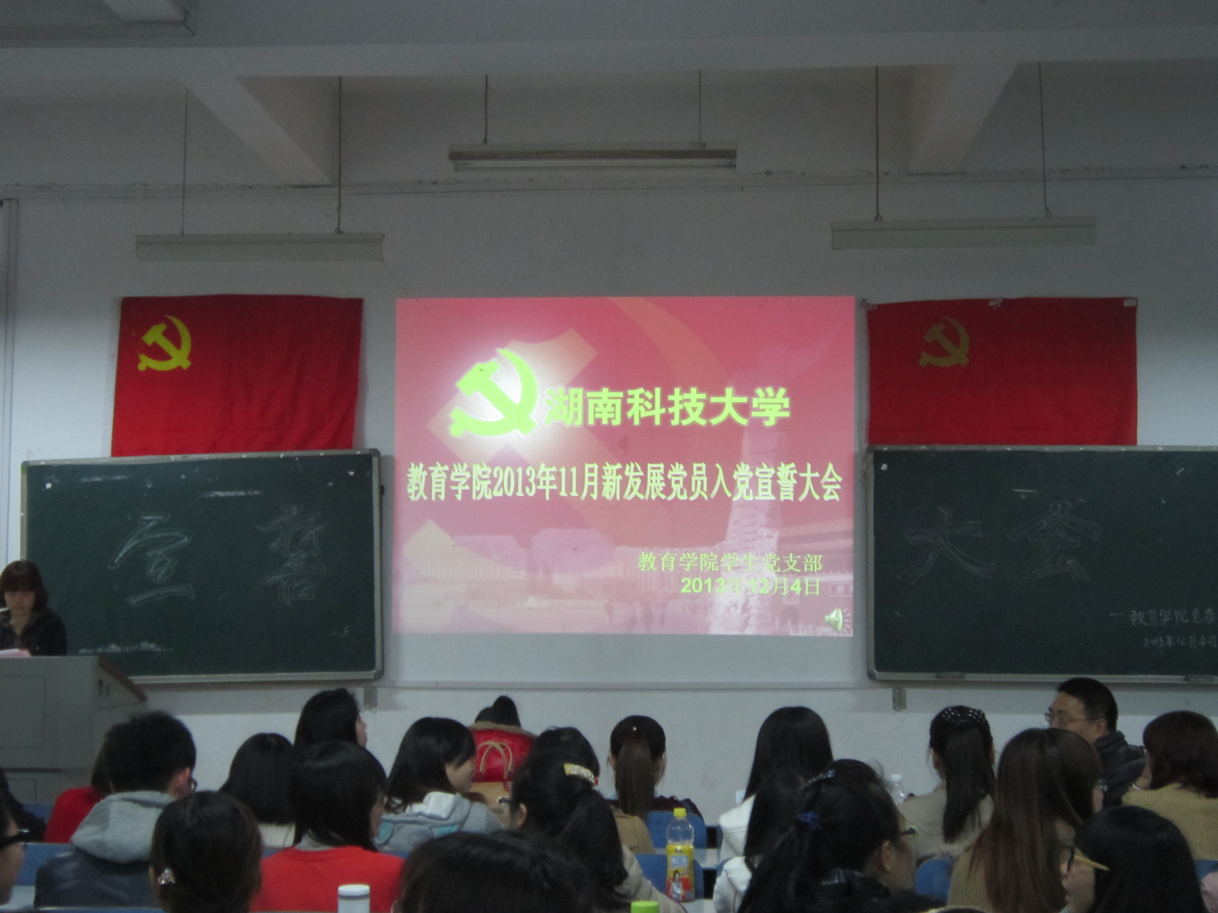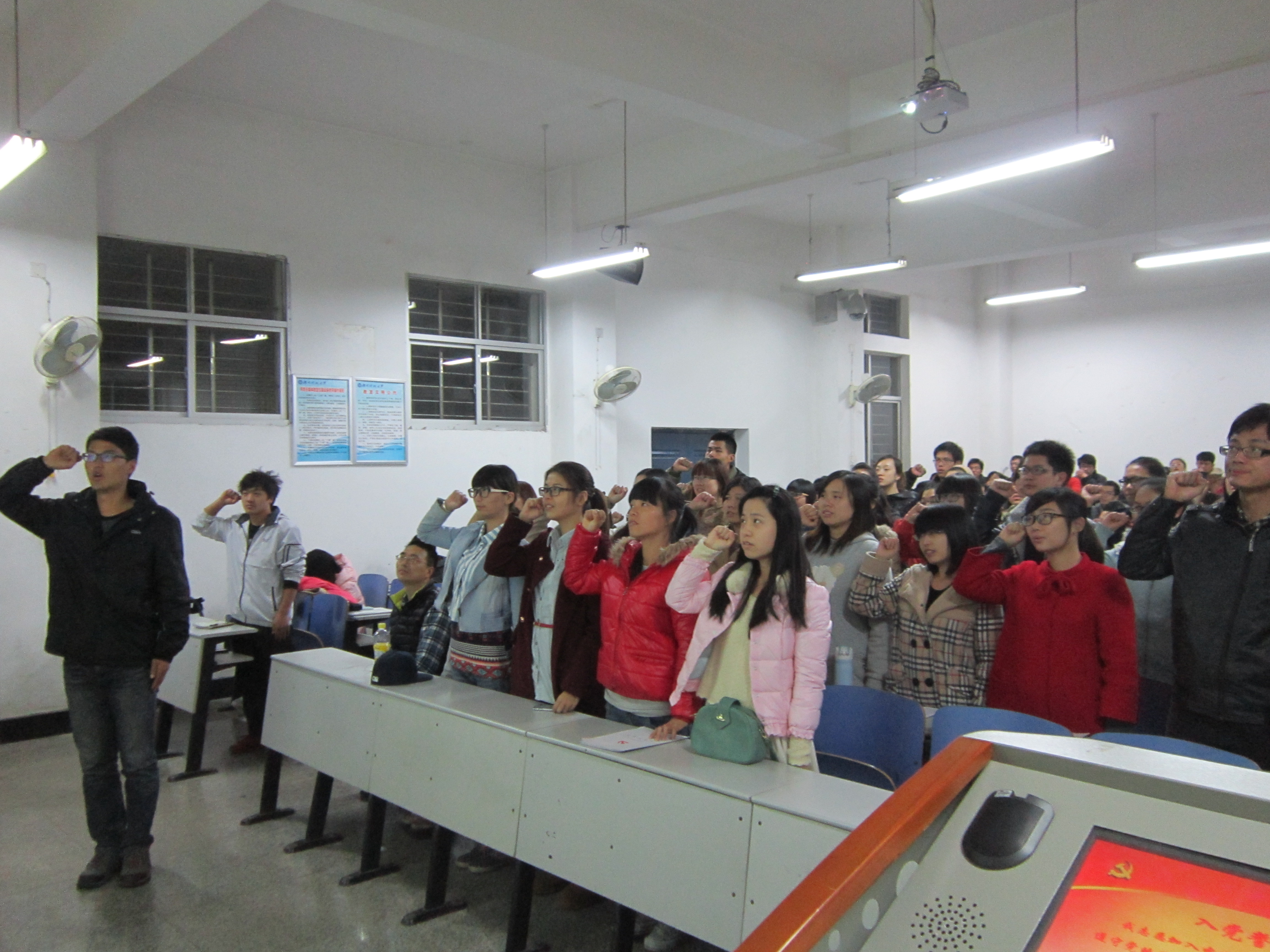 “我志愿加入中国共产党,拥护党的纲领,遵守党的章程,履行党员义务,执行党的决定……为共产主义奋斗终身,随时准备为党和人民牺牲一切,永不叛党。”随着铿锵激昂的入党宣誓誓言的响起,2013年11月新发展党员入党誓大会于2013年12月4日在八教1-1教室隆重召开。公司党委副书记王伟清同志、本科生党支部书记胡银华同志、研究生党支部书记李涛同志,员工党建会副书记李卫省同志以及球盟会全体党员出席了大会。本次大会由胡银华同志主持。