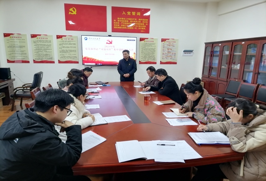 刘斌、黄甜、夏永庚、练素华、胡银华、罗江林、张桂玉、欧树宏8位党支部书记依次在大会上述职,并接受了党委书记点评和与会人员评议。最后,根据述评情况,结合日常工作表现,与会人员对8位党支部书记进行了综合评议。