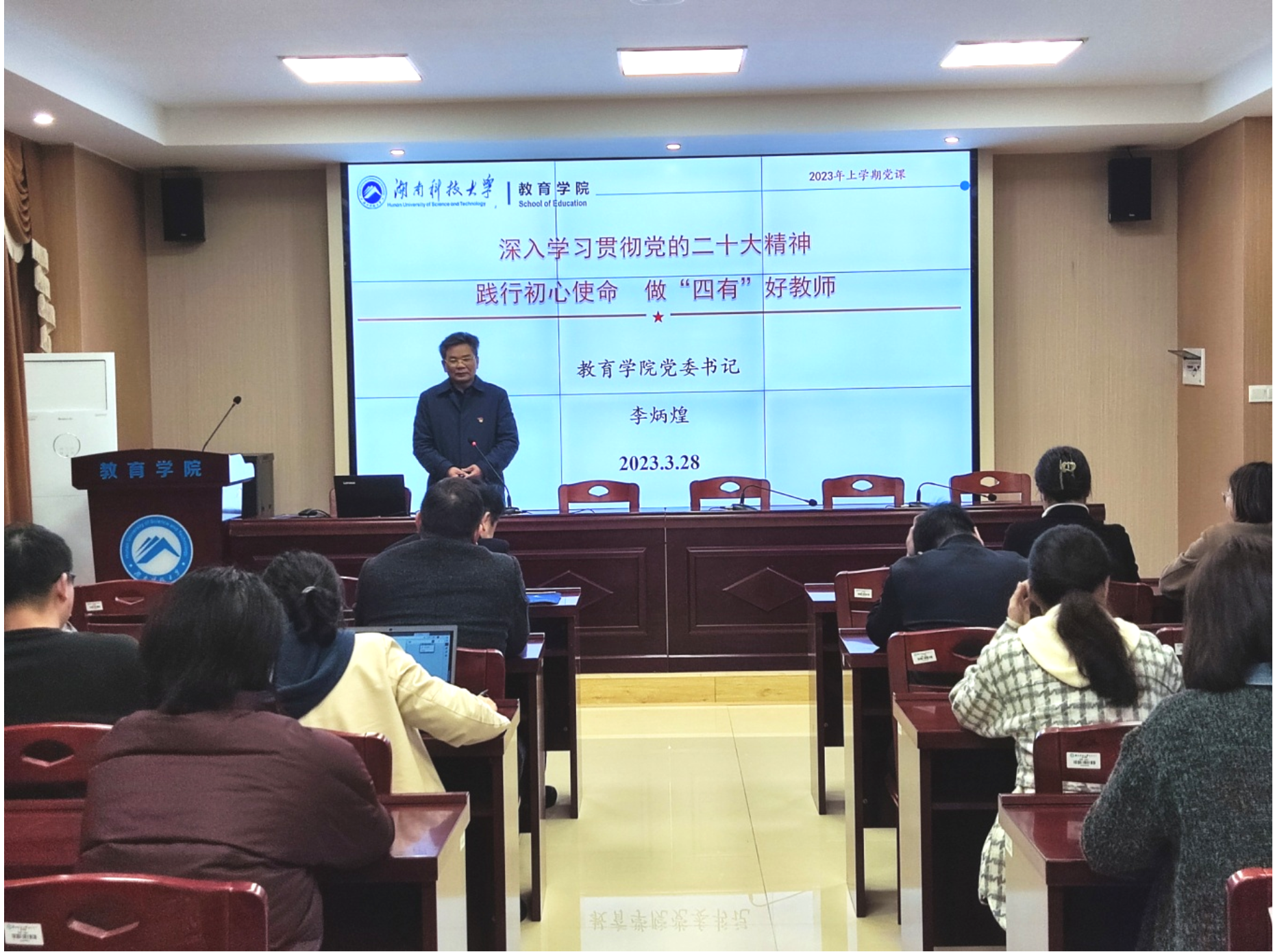 图1 李炳煌书记给全体教职工党员上党课