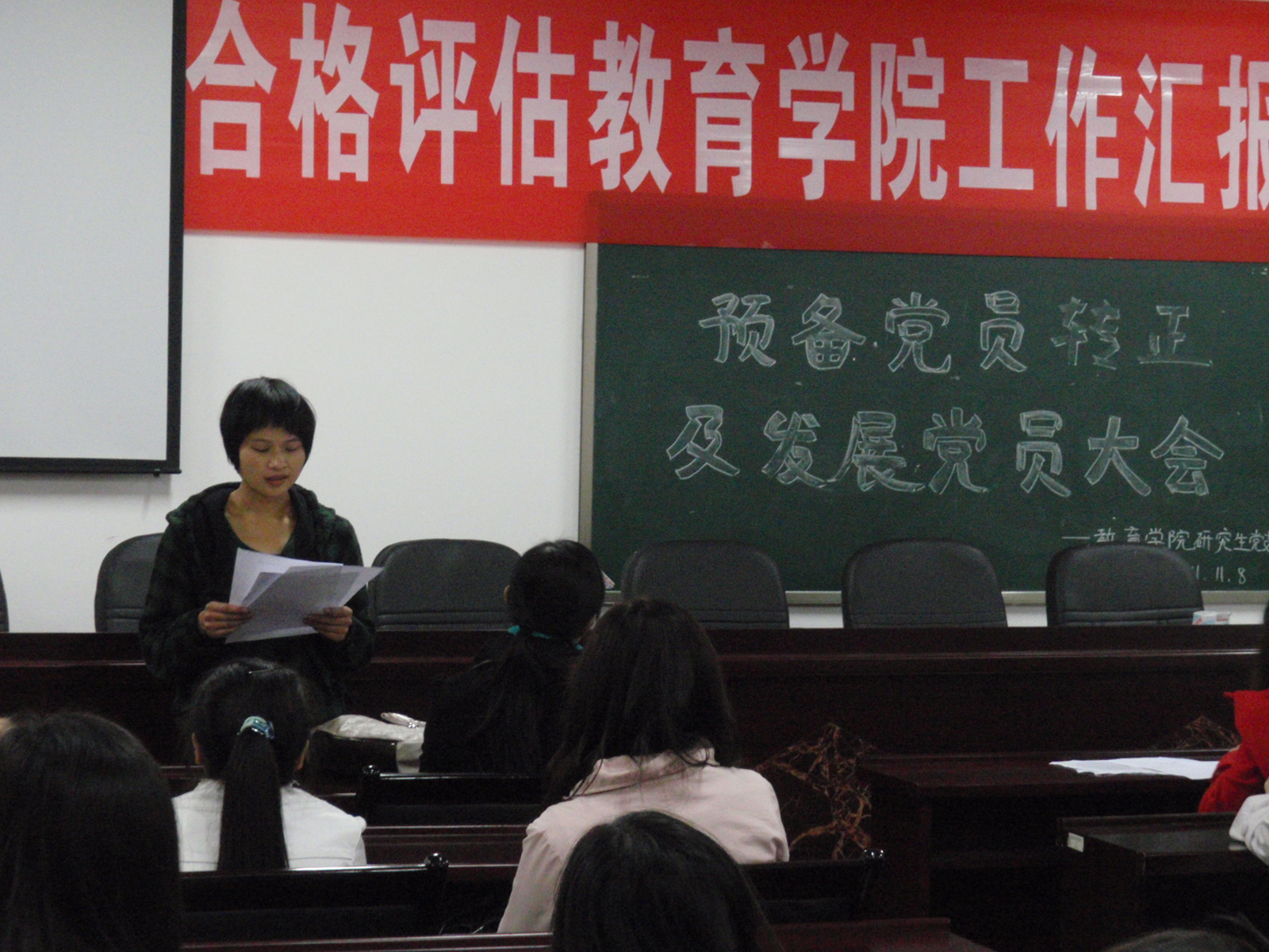会上,6位预备党员和本次拟发展党员向支部汇报了近一年来个人的思想、学习、工作、生活情况并接受了大家对他们的提问,使大会成员感受到了他们在各方面的成熟进步和全心全意为人民服务宗旨的决心。接着,有表决权的正式党员参与了投票,支部书记练老师宣布投票结果,邓乐江、莫沙等八位同志获得高票,具备党员条件,接收为预备党员。包文婷、彭礼等6位预备党员全票通过,按期转正。