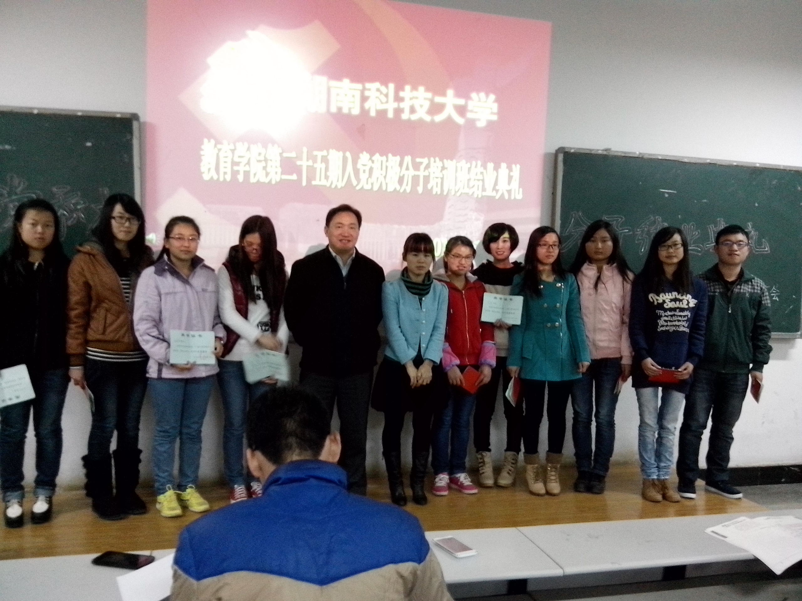 在本期党校班长代表谭兵同学和学员代表袁星芳同学分别汇报交流学习的心得体会后,本科生党支部书记胡银华同志宣布本期培训班优秀学员名单并由王书记为优秀学员颁发荣誉证书。王书记首先祝贺公司第二十五期入党积极分子的培训工作取得圆满成功,并表示,希望各位入党积极分子能再接再厉,在各方面严格要求自己,向党组织靠拢,争取早日成为一名优秀的老员工党员。
