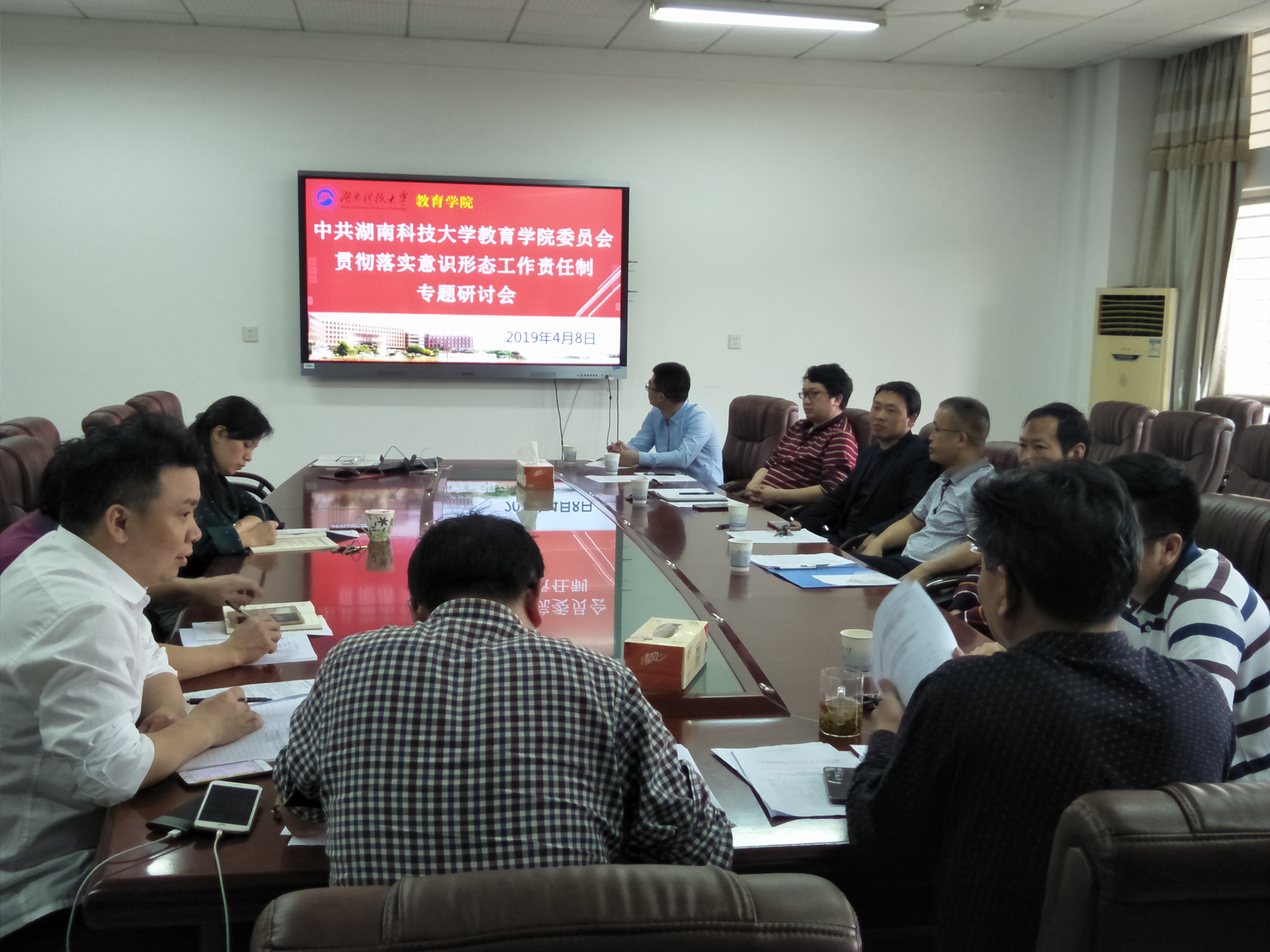 2019年4月8日下午,球盟会全体党委委员、各教学系系主任、学工办主任、实验中心主任在八教208室召开贯彻落实意识形态工作责任制专题研讨会。会议由院委书记李炳煌主持。