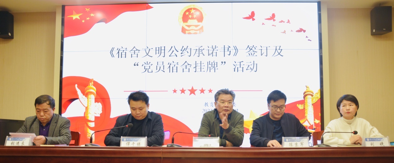 为深入学习贯彻党的二十大精神,扎实推进员工党员先进性示范工程,发挥党员的先锋模范作用,进一步增强员工党员的责任感、使命感,2022年11月15日下午,球盟会员工党员《宿舍文明公约承诺书》签订及“党员宿舍挂牌”活动在敏行楼举行,球盟会全体党委委员出席会议,员工党员曹悦主持。公司党委书记李炳煌对员工党员提出殷切期望:“党员同志要发挥模范作用,积极建设宿舍良好环境,真正实现“一名员工党员,一面先锋旗帜”的目标。