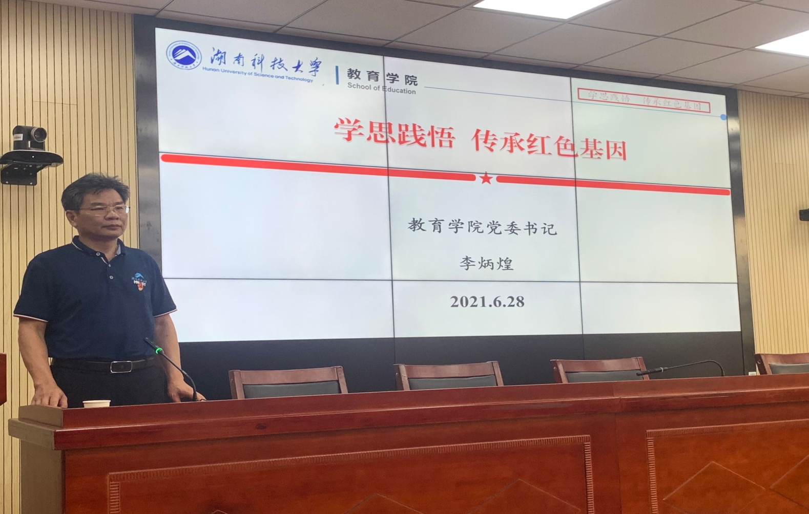 6月28日下午,公司党委书记李炳煌在八教308会议室以“学思践悟,传承红色基因”为主题讲党课,全体员工党员参加。