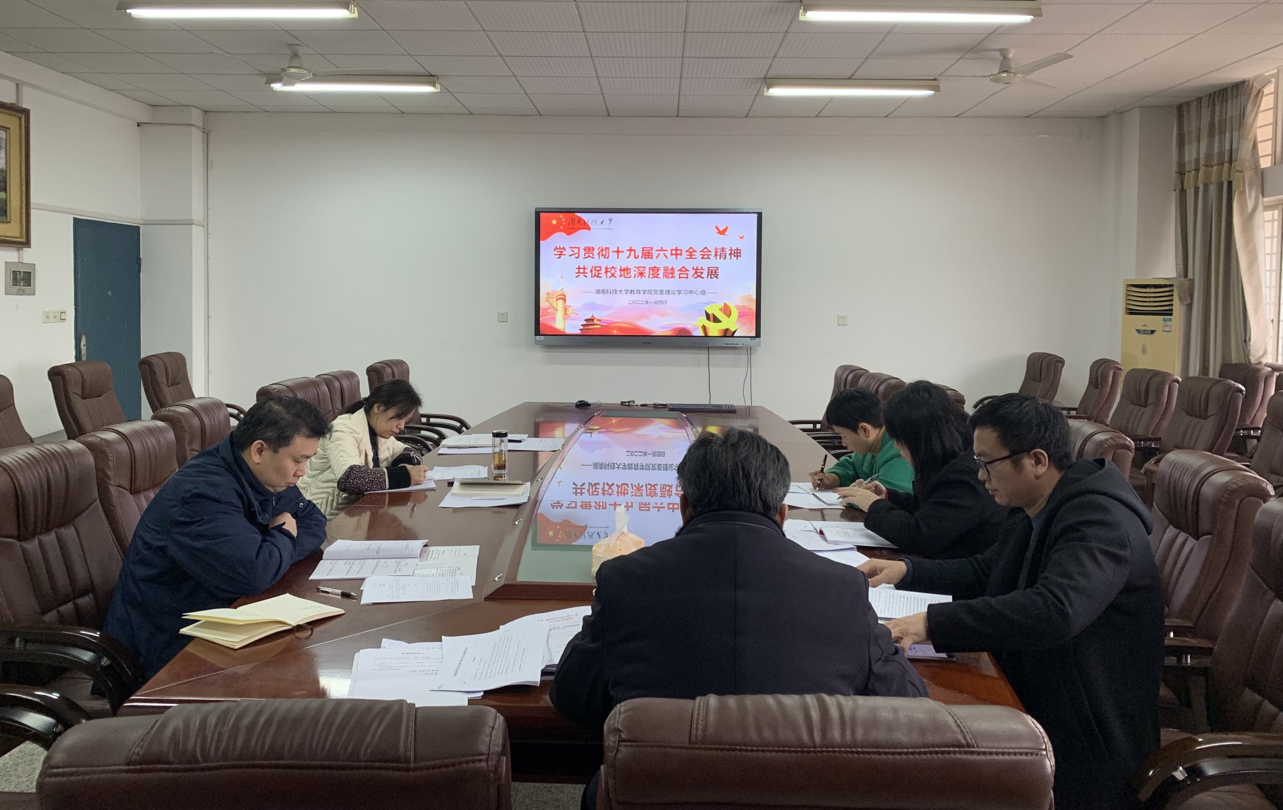与会人员深入研读《中国共产党第十九届中央委员会第六次全体会议公报》《中共中央就党的十九届六中全会精神举行新闻发布会》《球盟会、湘潭经济技术开发区关于校地深度融合发展工作方案》等内容。认真学习相关文件精神,围绕主题开展深入研讨,如何更好地发挥高校和地方经济社会的优势,进一步推进校地深度融合发展,实现共建共赢。