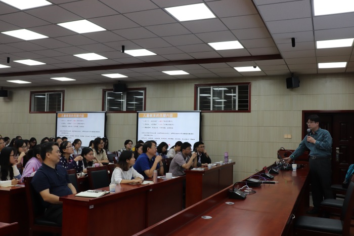 讲座分别从“关注儿童心理社会能力的必要性与紧迫性”“共情陪伴是发展儿童心理社会能力的必然选择”“共情陪伴的游戏化与生活化课程教学体系分享”三方面进行了详述。