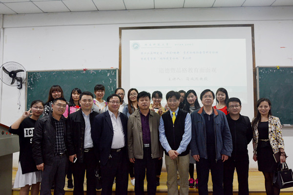文韵飘香,道德共鉴。2016年4月24日晚,台湾屏东大学教育行政研究所教务长简成熙教授在公司为第十二届研究生“唯实·创新”学术论坛暨球盟会“明湖教育论坛”作了题为“道德暨品格教育面面观”的主题讲座。讲座由公司党委书记谭建平教授主持。球盟会人事处处长陈春萍教授、球盟会副经理陈坤华教授,党委副书记王伟清教授,以及相关教师莅临现场。