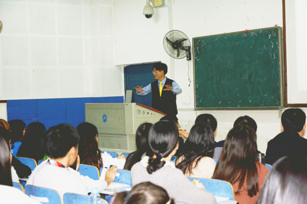 简成熙教授用随和幽默的开场白拉近了与在场听众之间的距离感,为讲座增添了一丝活泼。他通过介绍自我学习经历及台湾地区教育系员工的学习情景、职业走向开启话题,并与在座同学就“是现代人还是古代先人更有道德品质”这一问题进行互动,用几个小故事深入浅出地从“服膺应有的秩序,遵守既有的规范;思考或批判既定的道德规范;关怀、慈悲与同理心;圆融(而不圆滑)的生活智慧;品德或品格新解”五个维度讲述了什么是道德以及既定的道德规范存在哪些反思点。他指出:“道德是关怀、慈悲与同理心,其主要是用来规范自身,不是用来绑架他人的。”他主张大家应以宽容的态度对待不同主体选择,用圆融的方式处世。简教授生动而幽默的讲解不时赢得师生们的掌声。