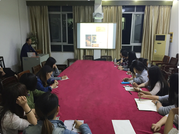 5月10日,湘潭市一中美术骨干教师郑岳湘为公司教育硕士专业学科教学(美术)方向研究生授课,授课主题为《你不知道的中小学美术教育实况》。