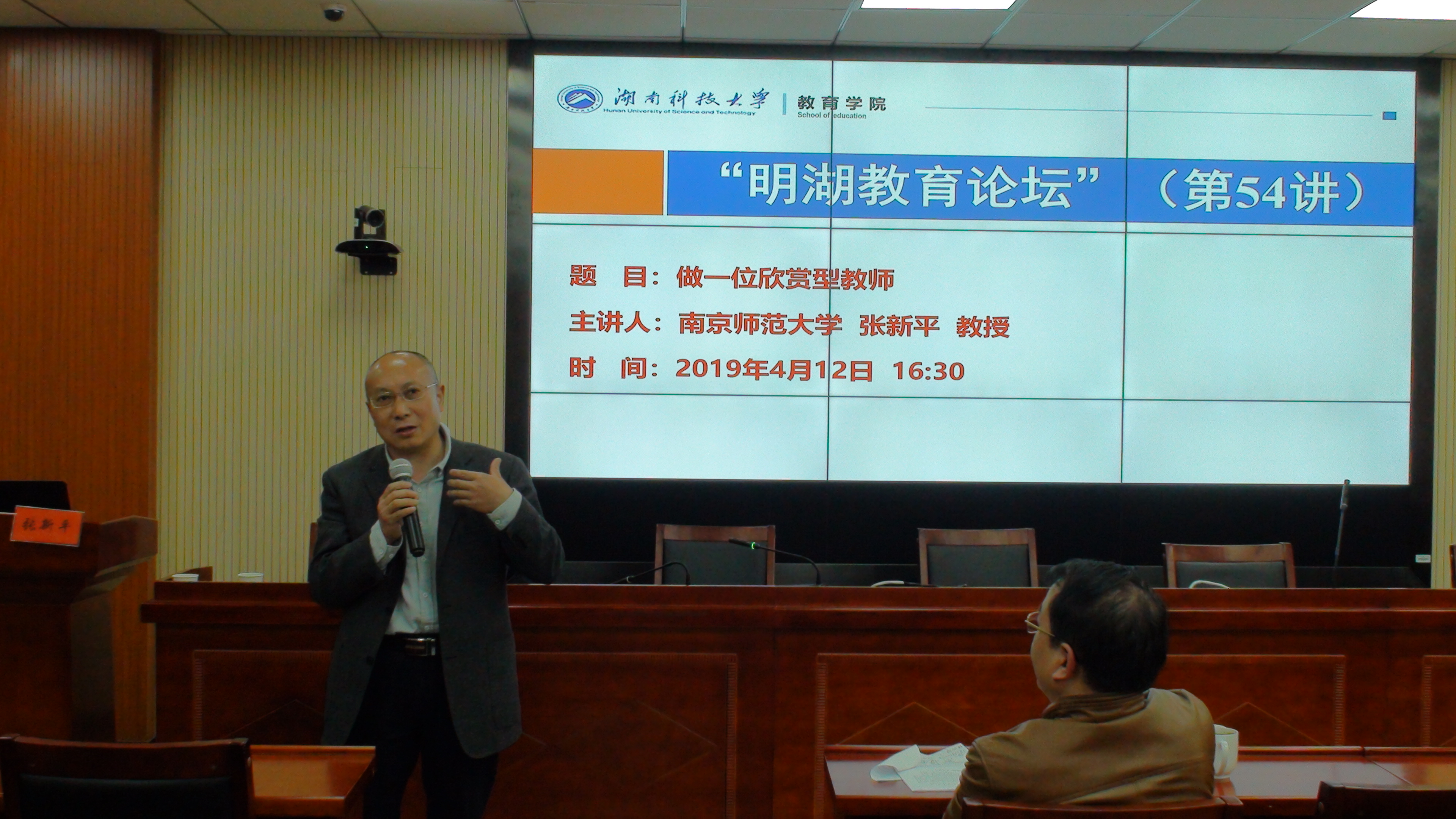2019年4月12日下午,南京师范大学教育科学公司博士生导师张新平教授做客“明湖教育论坛”,为公司师生带来题为“做一位欣赏型教师”的学术报告。报告会由球盟会经理李海萍主持。