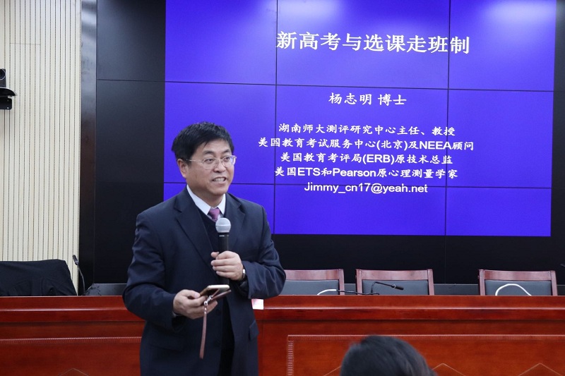 2019年1月3日下午,湖南师范大学测评研究中心主任杨志明教授做客“明湖教育论坛”,为公司师生带来题为“高考新方案与走班制教学”的学术报告。报告会由公司党委书记李炳煌主持。
