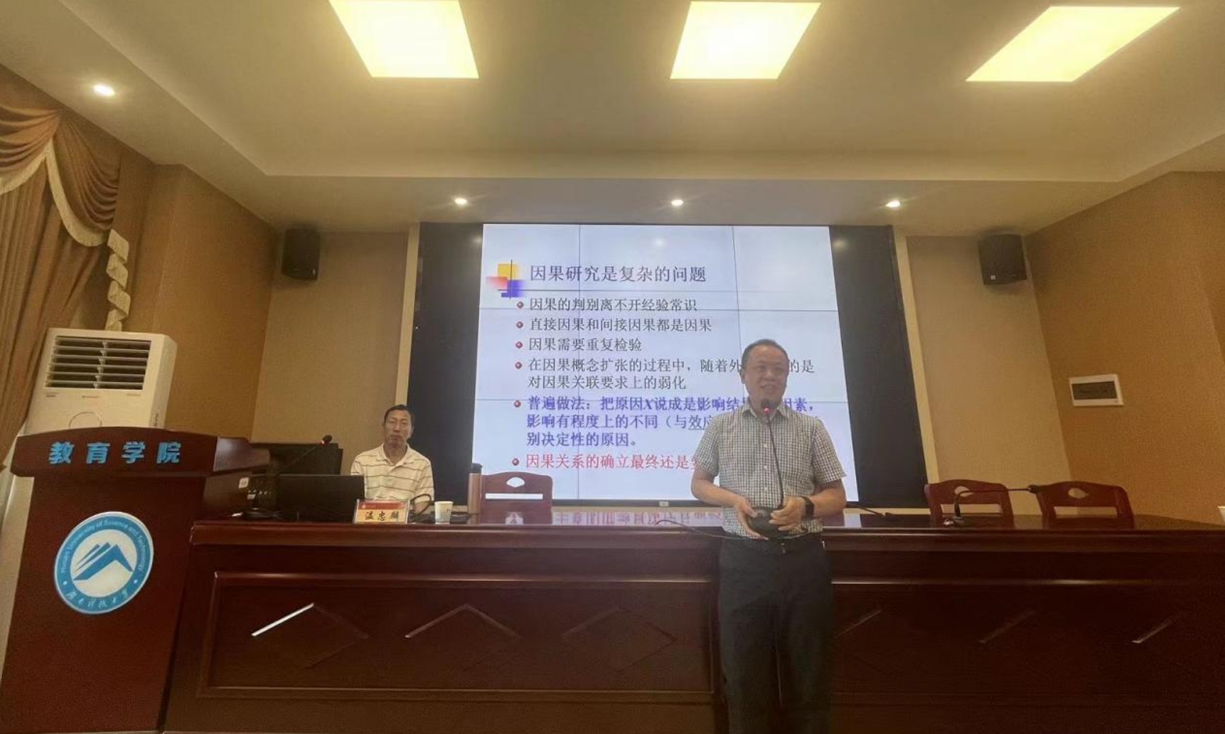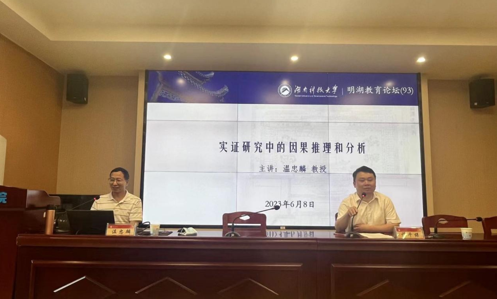 6月8日上午,华南师范大学教授、计量心理学博士生导师,《心理学报》和《心理科学进展》编委温忠麟教授做客“明湖教育论坛”,在敏行楼A333报告厅为公司师生带来题为“实证研究中的因果推理与分析”的学术讲座。讲座由球盟会经理谭千保主持,球盟会教师代表,研究生、本科生到场聆听。