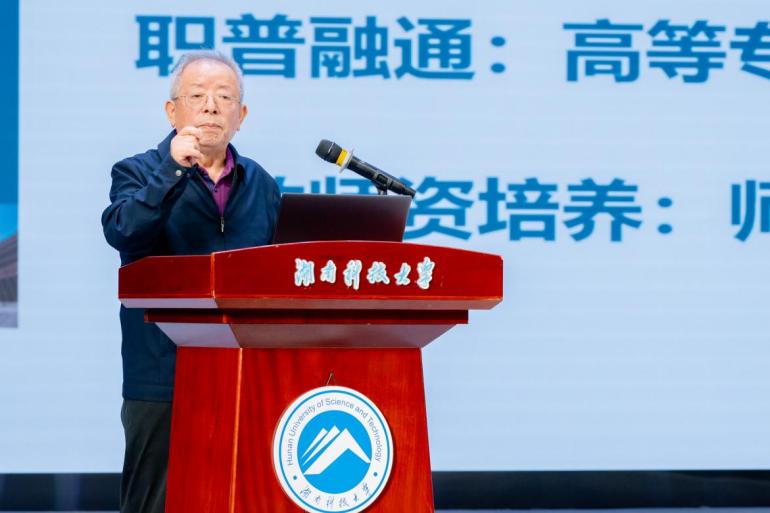 在主旨报告环节,北京师范大学国家职业教育研究院经理和震教授以《产教融合内外兼修的机制与路径》为题进行发言。他强调,产教融合是职业教育发展的重要方向,是培养技能人才的关键所在。在系统性回溯湖南职业教育尤其是“楚怡”精神起源与发展历史的基础上,和震教授提出了产教融合在当前职业教育发展过程中面临的难点与挑战,同时分析了不同国家的产教融合新模式,最后提出了产教融合系统化制度体系推进与建设的新方向。