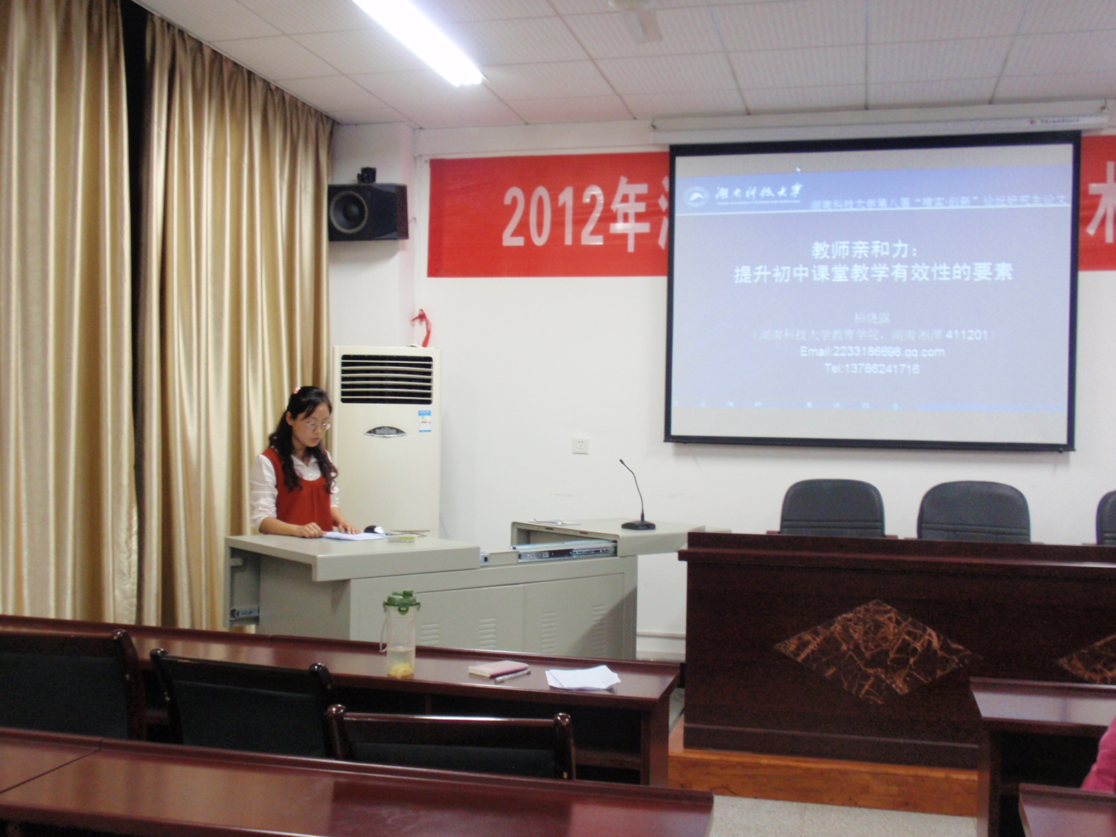 报告会上,六位研究生依次针对各自的论文做了深入形象的报告。首先是赵琳同学就其论文《城市老年人生命质量、自我接纳与主观幸福感的研究》进行了深入剖析,其中对主观幸福感、生命质量和自我接纳进行了详细的界定,跟同学们分享了实证调查时遇到的问题,并与同学们积极互动,现场学术氛围活跃而又浓厚。王昭臣同学的《游戏教学法在小学英语词汇教学中的应用》、柏晓露同学的《提升初中课堂教学有效性的要素》、石琳琳同学的《高一员工英语词汇搭配能力的调查研究》、黄樊同学《马卡连柯惩罚教育思想及教育意义》以及刘胜华同学《论新课程改革背景下教师叙事研究能力的提升》相继展开,并将报告会逐步推向了高潮。此次活动的圆满举办充分展现了公司学子的求学风采。