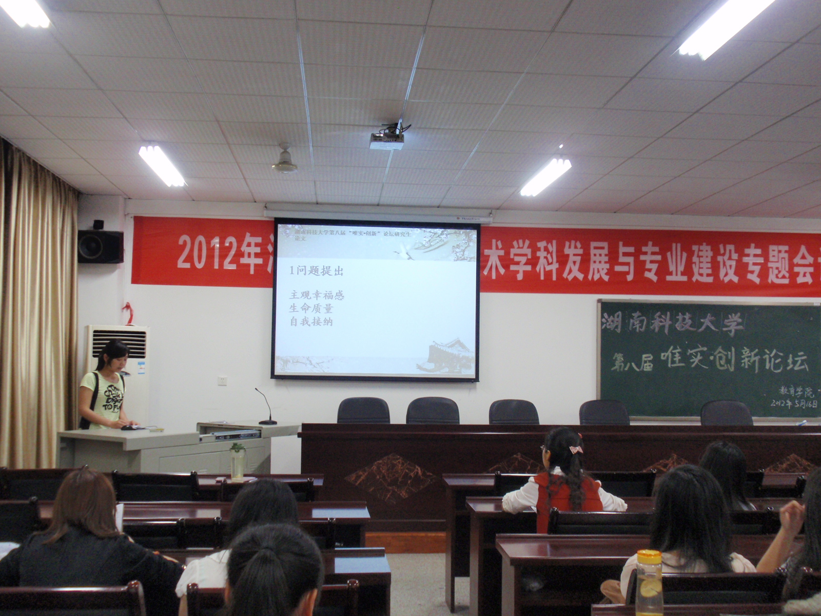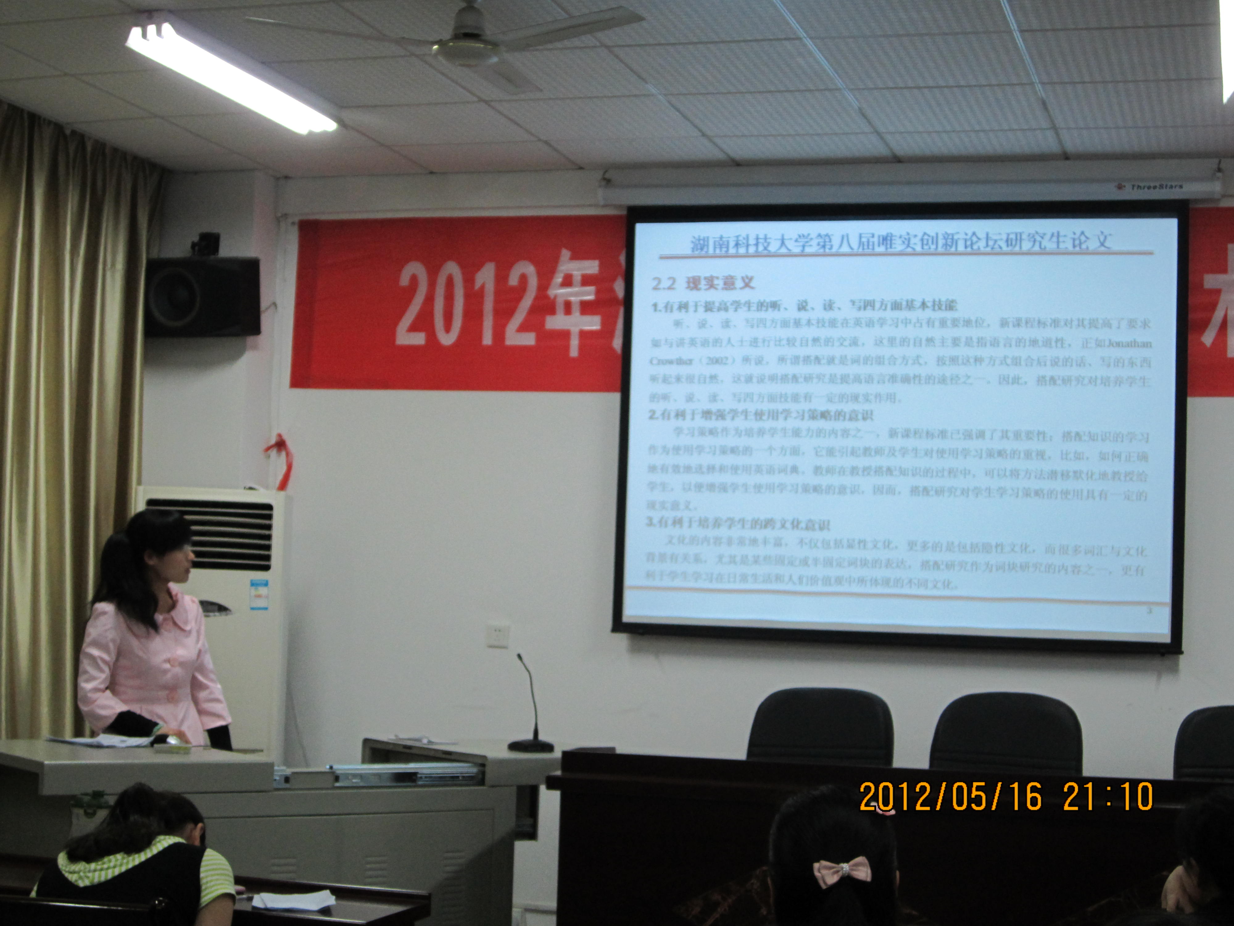 球盟会第八届“唯实·创新””学术论坛球盟会分论坛于2012年5月16日晚七点半在八教408拉开帷幕,本次报告会由学术部组织,11级全体研究生出席了此次报告会。