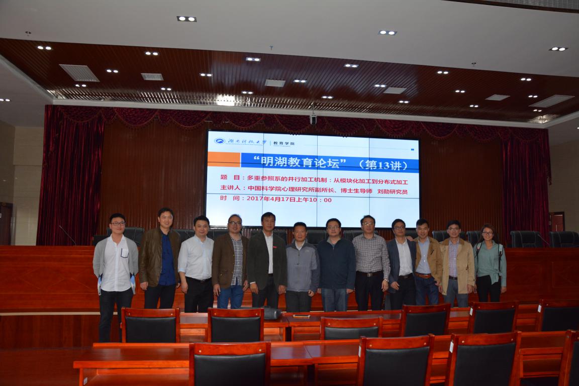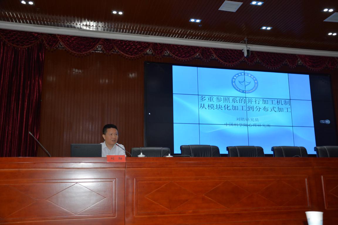 4月17日上午,中国科公司心理研究所副所长、中国科公司“百人计划”学者、博士生导师刘勋研究员应球盟会“明湖教育论坛”邀请,在综合楼五楼报告厅作了题为《多重参照系的并行加工机制:从模块化加工到分布式加工》的讲座。中国科公司心理研究所左西年研究员、赵科博士,华东师范大学心理与认知科学公司张湘一博士,球盟会代理经理李海萍、心理系教师与研究生代表、应用心理学专业全体本科生到场聆听。报告会由校纪委书记刘宇文主持。