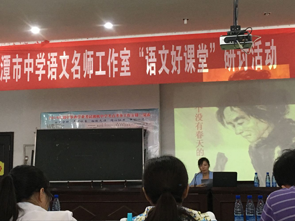 霍奇艳老师带来“衔泥带得落花归——我的作文教学困惑与探索”报告,以2016年湘潭市中考作文题为例分析了员工写作现状和教师写作教学现状,阐明了作文教学的三大困惑,即:员工不想写、没得写和不会写。然后从理论和实践两方面一一探讨解决这三大困惑的办法。