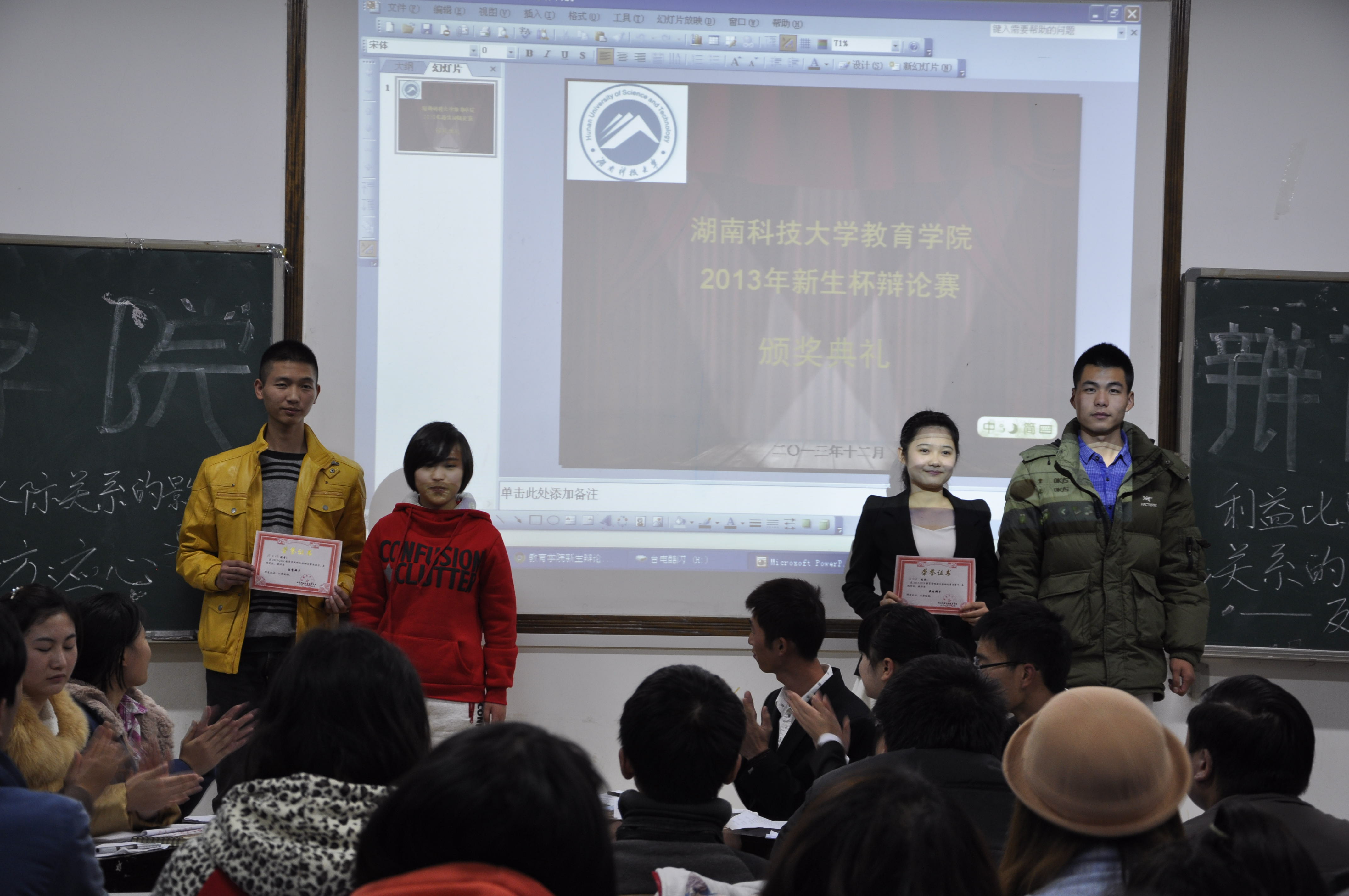 12月6日晚,由公司学习部主办的“新生杯”辩论赛决赛在八教3-3正式举行,经过“过五关,斩六将”的层层角逐,13级应用心理学专业与教育学**表最终问鼎决赛。公司南北争霸赛创始人赵耀、校辩论队前队长毛明辉,校辩论队副队长邓宝与来自人文公司、土木公司、商公司的专业辩手应邀参加并担任评委。