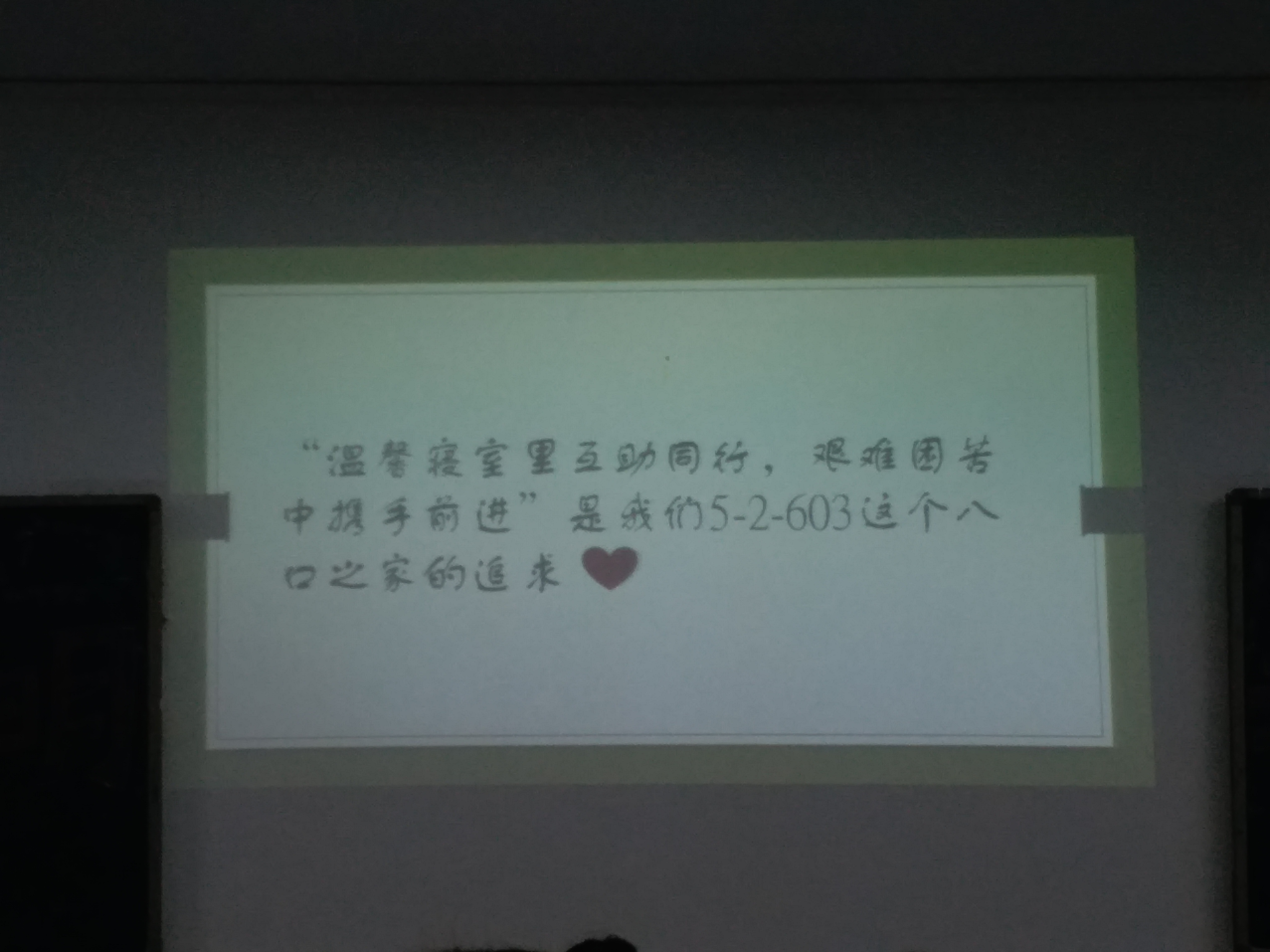 本次活动旨在培育和践行社会主义核心价值观,丰富员工课余生活,建构优质的生活学习环境。各位主讲人通过ppt的展示与解读,向在坐的同学们介绍了本寝室成员的日常活动、学习生活及一些寝室特色标志等;部分寝室因卫生表现良好,成员关系和睦,也多次被评为优秀寝室。在ppt展示过后,现场进行了投票环节,最终17级教育类四班112寝室获得一等奖,17级教育类七班207寝、17级教育类四班603寝室获得二等奖,17级教育类二班404寝室、17级教育类一班403寝室及17级教育类三班601寝室获得三等奖,最后由副主席曾根凤为他们颁奖并合影留念。
