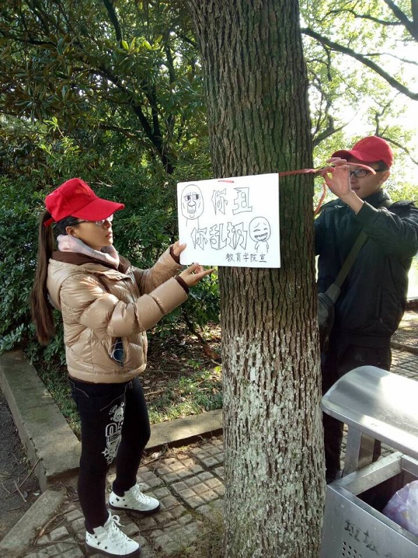 此次志愿者活动于上午11点40圆满结束。希望在“保护环境、注意安全、考研加油”的等一系列标牌的鼓舞下,垃圾桶边上的垃圾会越来越少,校内的交通事故会不断减少,考研的学长学姐会考上理想的公司。