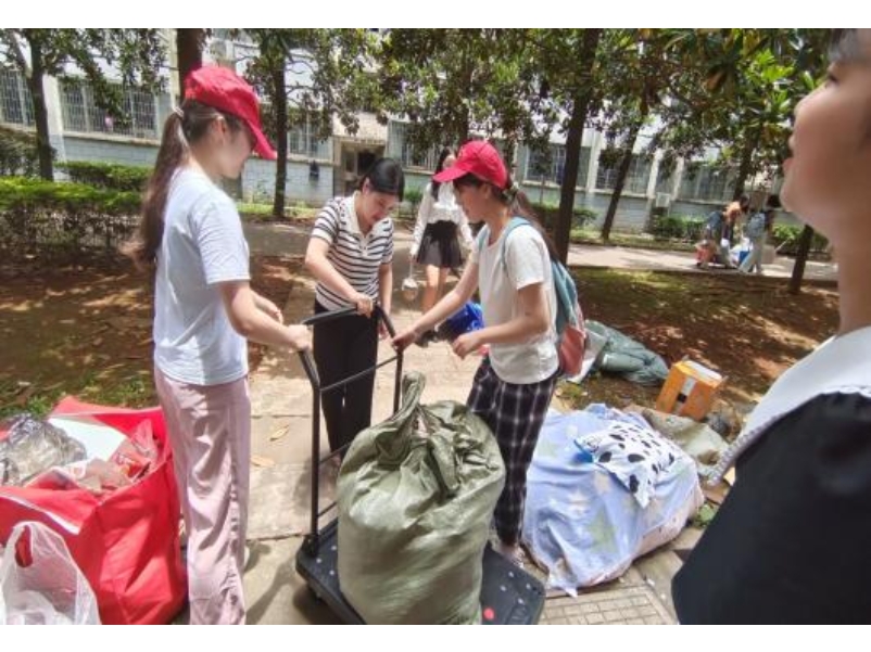 活动前期,会干们提前联系好需要帮助搬运行李的毕业生,并确定好搬运行李的时间和寝室位置。毕业典礼结束,会干们和常规志愿者在员工宿舍七区集合。在说明相关注意事项后,活动正式开始。志愿者各自联系对应帮助的毕业生。“你们是公司的志愿者吗?谢谢你们!”被帮助的学姐开心道谢。志愿者们热情帮助毕业生收拾整理行李,并将包裹搬运下楼,用小推车运送到寄行李的地方。天气虽然炎热,却阻挡不住志愿者服务的热情,毕业生脸上的笑容就是对他们最好的回馈!