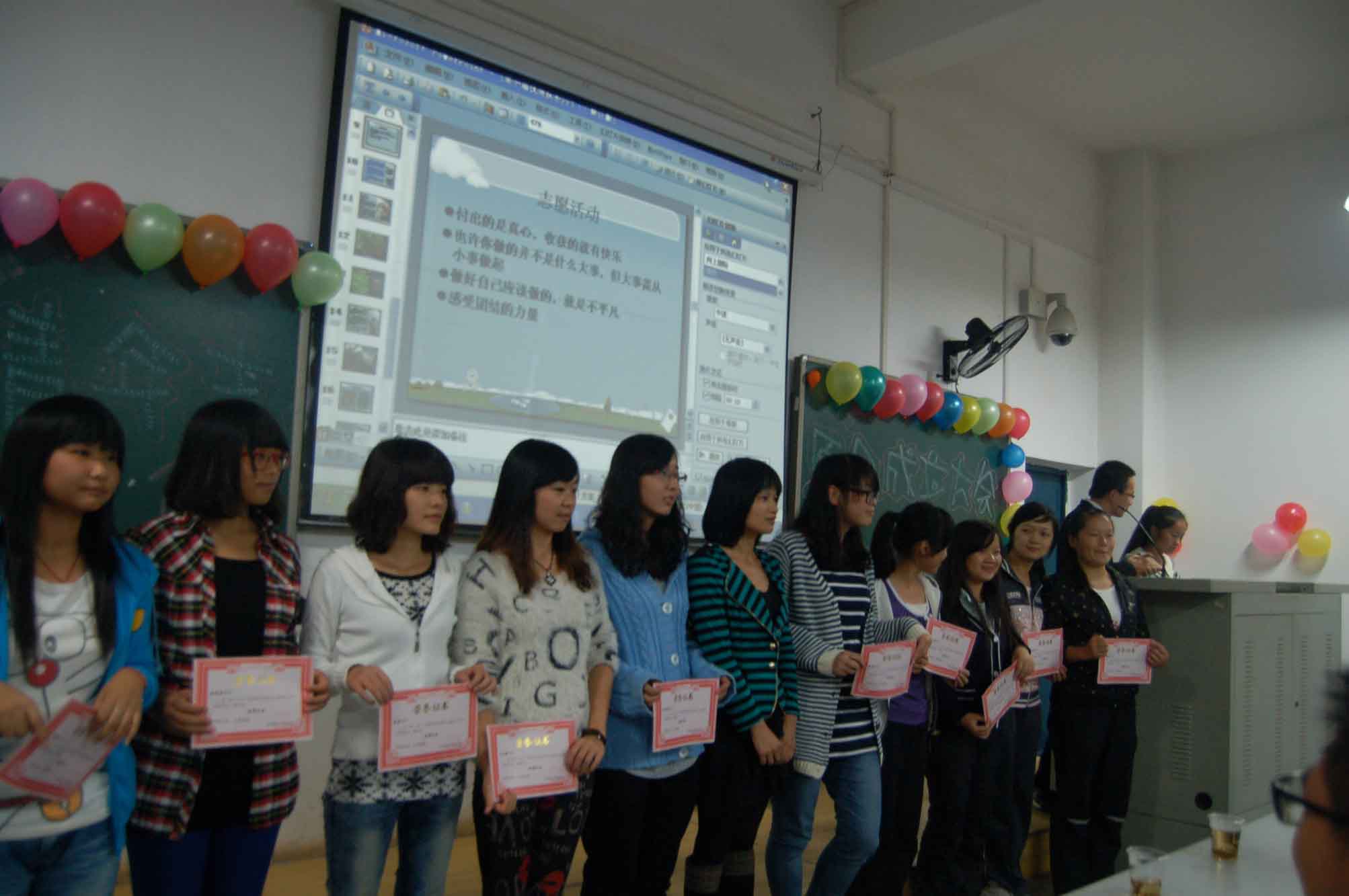 此次成立大会在庄严的《国际歌》声中盛大拉开帷幕。在讲话中练素华老师充分的肯定了上届志愿团成员所取得的优秀业绩,并宣读了第九届青年志愿团优秀队长名单和优秀志愿者名单,同时给获奖员工颁发了荣誉证书以兹鼓励,最后也对在座的12级新成员们提出了宝贵的意见和建议,赢得了大家阵阵掌声。