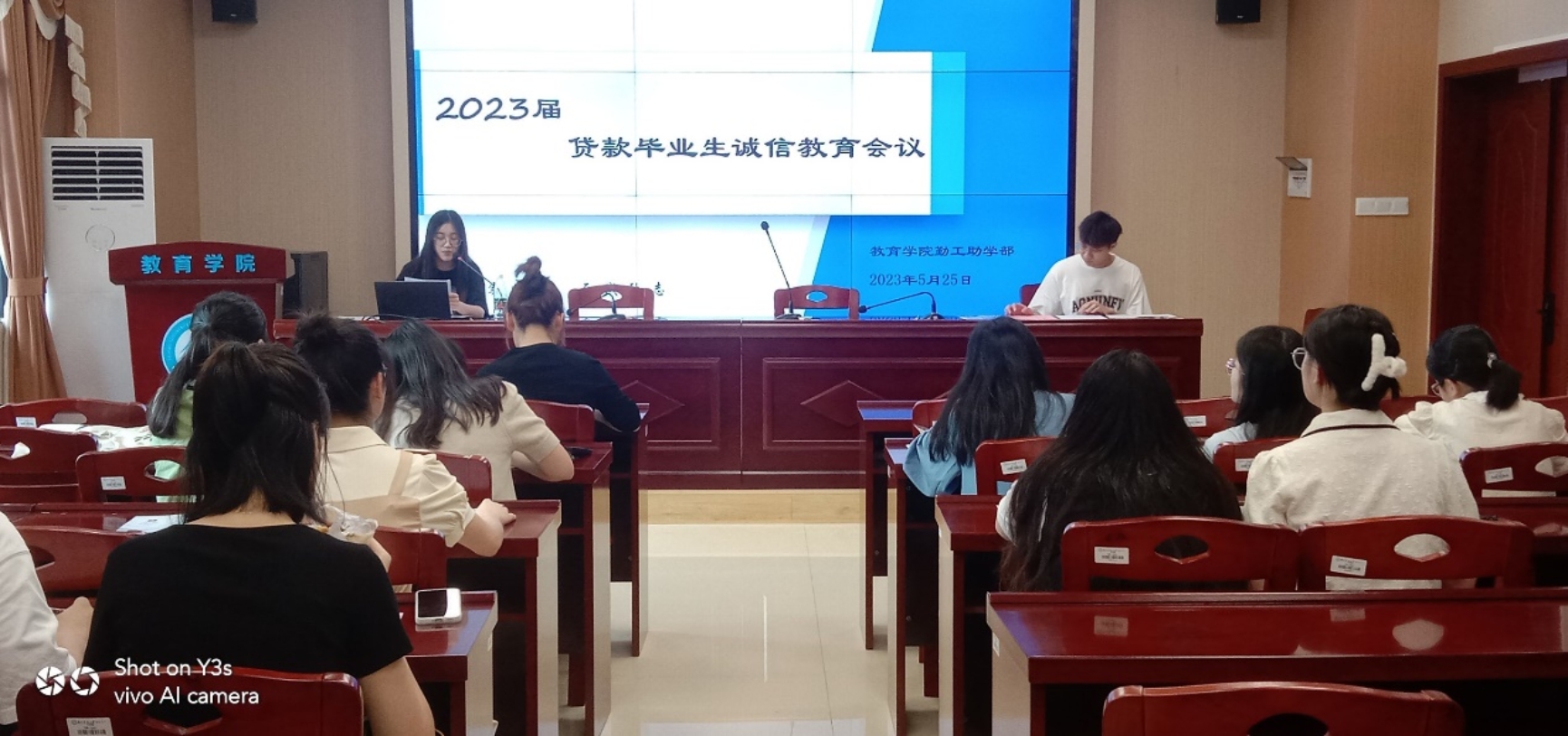 诚信贷款是老员工诚信的具体体现。为进一步优化公司育人环境,净化员工思想,积极营造球盟会“诚信光荣”的良好氛围,帮助贷款毕业生珍惜信用财富,明确个人在国家助学贷款中按约还本付息的责任,及时履行贷款义务, 5月25日,公司组织召开了“球盟会贷款毕业生诚信教育活动”,21级辅导员胡银华出席此次会议,勤工助学部部长杨佳霖、副部长陈露及全体贷款毕业生参加。