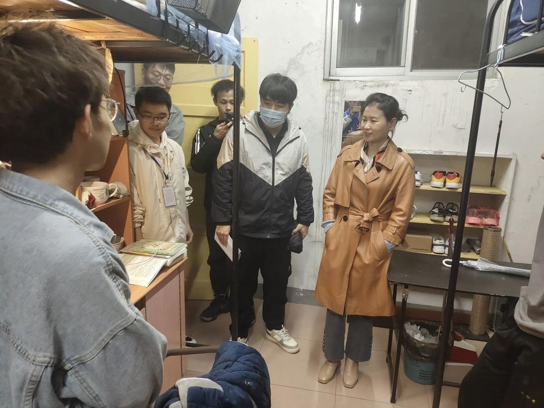 “马上降温了,要注意保暖”“实习有什么收获?”“没事的时候可以多去动一动”,在大四年级寝室,刘婕就实习、考研、作息等方面问题与同学们进行交流;“期中考试准备的怎么样?”“内务保持的不错!”在低年级寝室,她与同学们就日常学习和生活进行沟通。最后,刘婕表示,欢迎同学们随时来办公室坐坐,一起聊聊自己,聊聊未来。