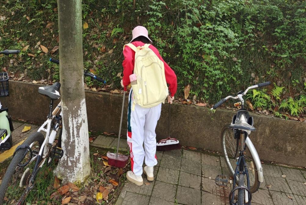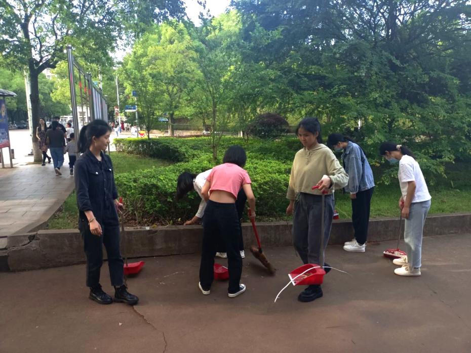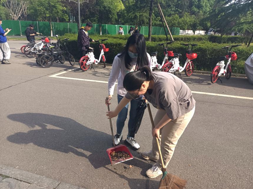 同学们通过自愿分组的方式,针对北门、继续球盟会正门前、第八教学楼周边以及生科楼前的草坪四部分区域进行清理。虽然天气炎热,教院学子们依然不惧辛苦,仔细清扫道路上的落叶枯枝。经过近四十分钟的时间,布满落叶的地面很快“焕然一新”,老师们也纷纷称赞。