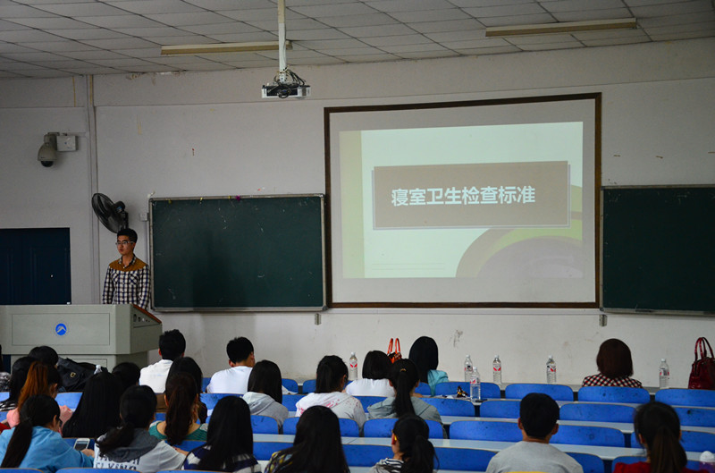 2014年4月15日15:00,八教1-3,为让员工进一步明确公司公司各项规定制度,希望大家能够真正践行承诺,遵守制度,纪检宿管部副部长孙绍焜就公司寝室卫生、晚归、请假等方面做了详尽的讲解报告。