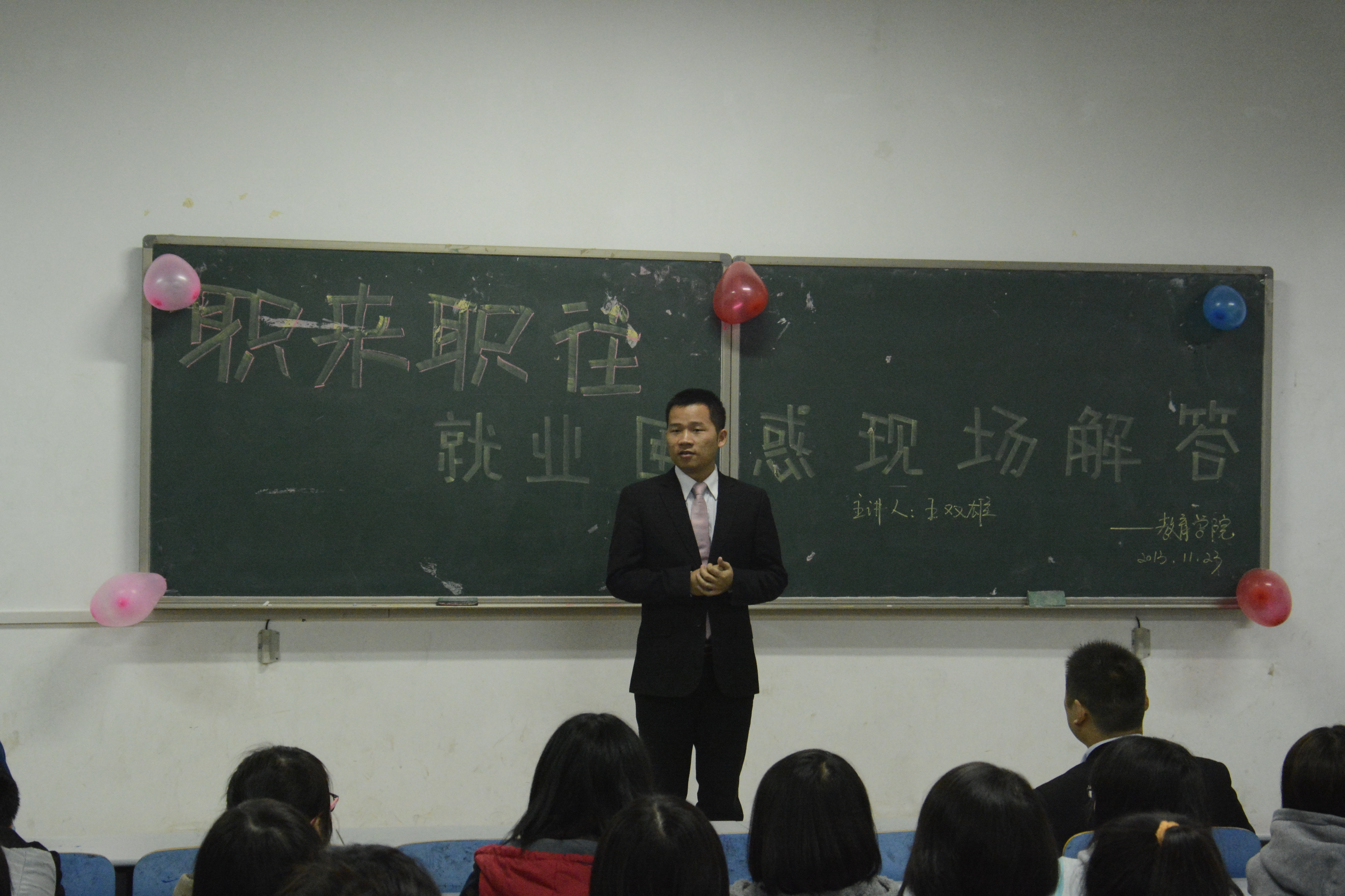 11月23日19:00,现场版的《职来职往》使八教1-5人声鼎沸:公司2005届毕业生王双雄为球盟会10级的“准毕业生们”面对面解答就业困惑,这次活动由公司员工资源部主办。