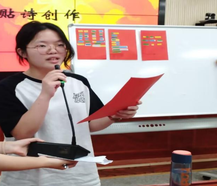 随后,进行了需要组员们齐心协力共同完成的拼贴诗环节,学员们积极参与,热闹非凡。