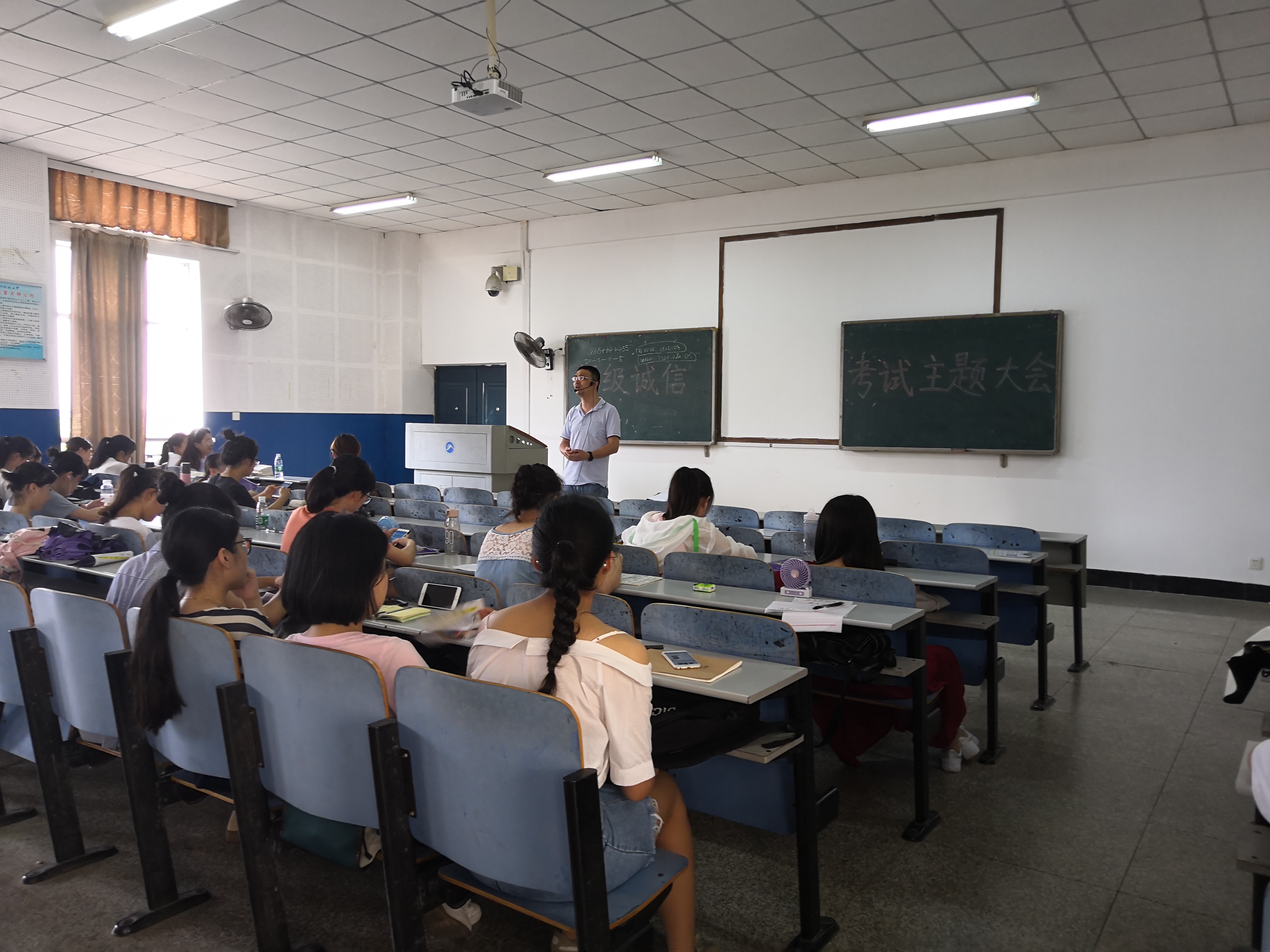 2018年7月4日16:30,球盟会16级诚信考试主题大会在第八教学楼3-3教室顺利召开,由学工办主任李涛主讲。