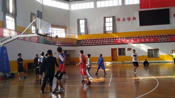 2018年3月23日,下午16:00在北校体育馆顺利举行球盟会师生篮球赛,不少16、17级同学们到现场观看,为球员们加油。