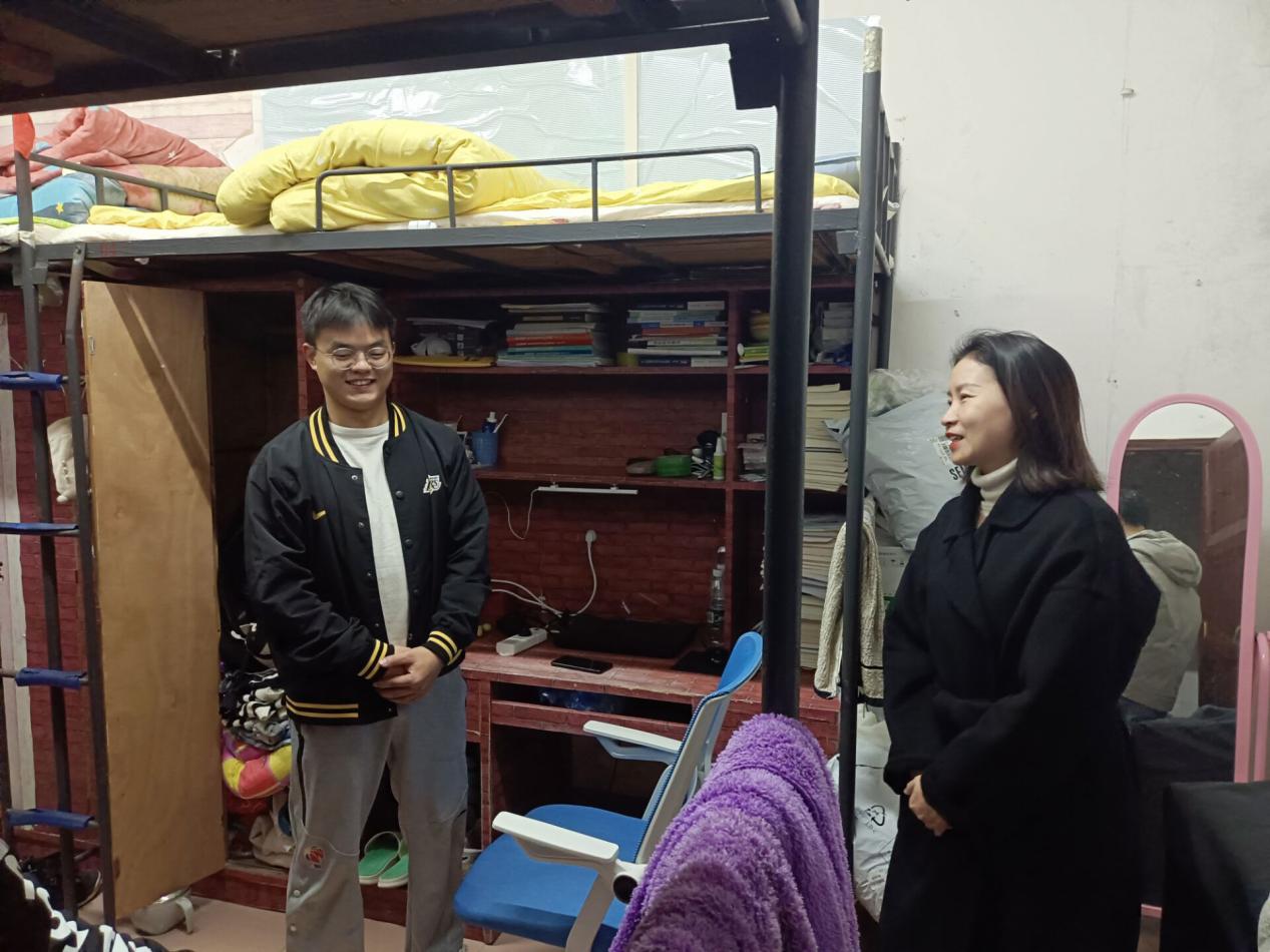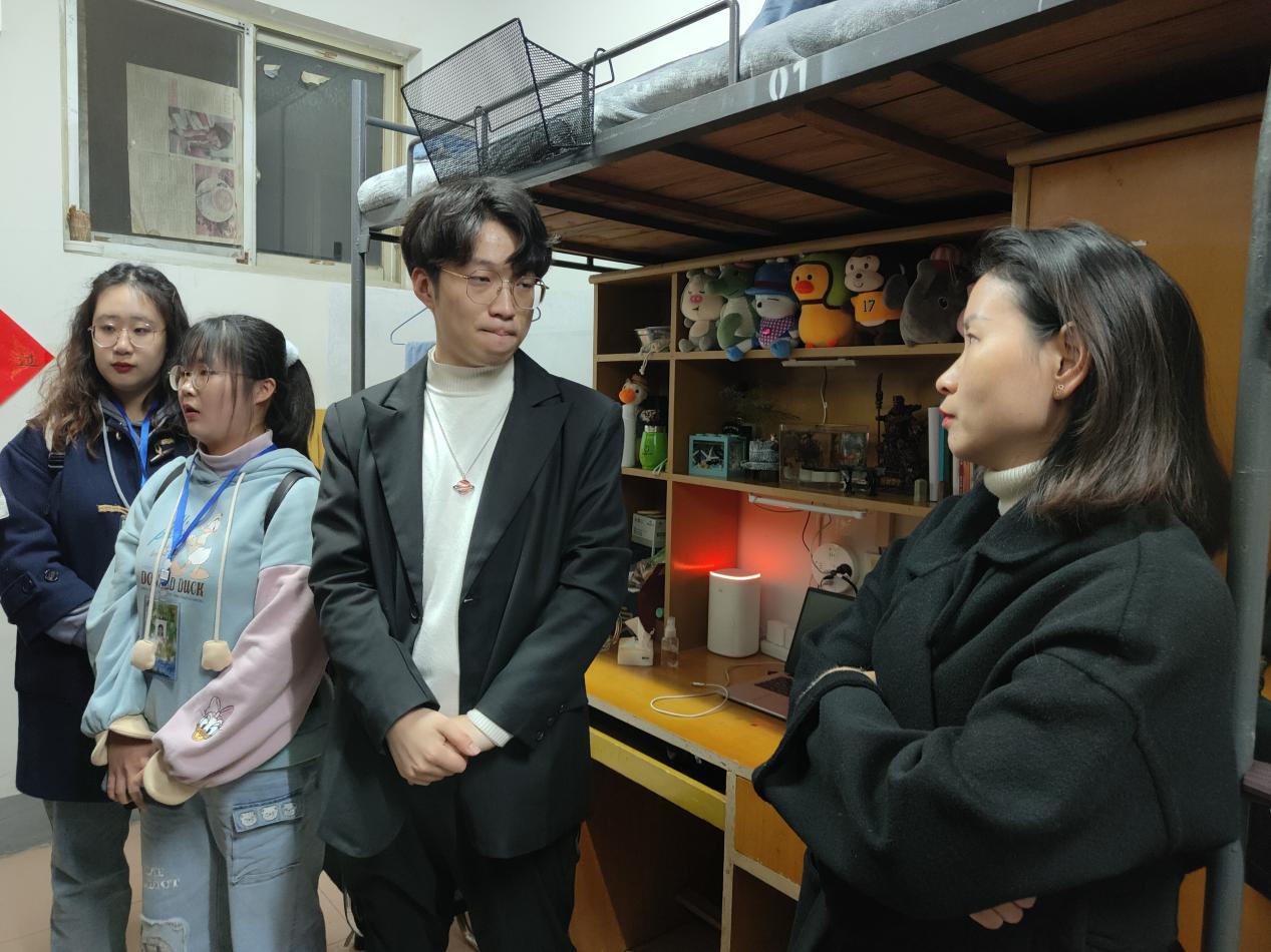 “最近觉得冷吗?冷的时候一定要多穿一点哦,做好保暖工作哟。要注意排插的使用,不用的时候这个开关一定要关掉。”“你们都在学习啊!记得早点休息哟!”在提醒同学们的安全问题的同时,老师们也亲切地与同学们进行了交流,话语间尽显温暖与关心。本次下寝排查,一方面提高了同学们的安全意识,另一方面也增强了老师和同学们之间的感情,拉近了彼此的距离。