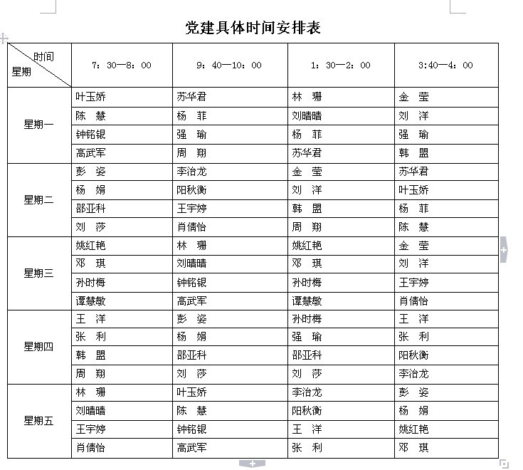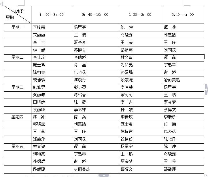 2012年下半年球盟会校风督察安排表 纪检队员具体安排表: