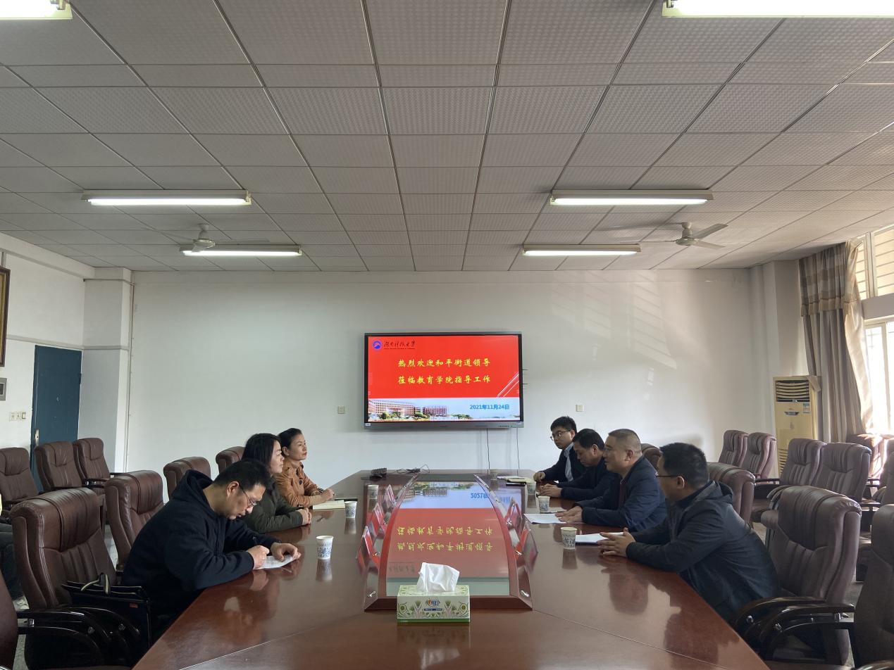 11月24日下午15:00,湘潭经开区和平街道领导一行莅临球盟会商讨校地合作事宜,会议在第八教学楼208会议室举行。和平街道党工委书记李熙,党工委副书记周桂波,党工委委员、办事处副主任杨建辉,党工委委员、组织委员杨稳桥,球盟会副经理陈慧青,党委副书记刘婕,学工办主任李涛出席会议,球盟会团委员工会主席杨淑雯、主席团成员康玉婷,社团管理部副部长詹卓铭、董与佟到场参加。